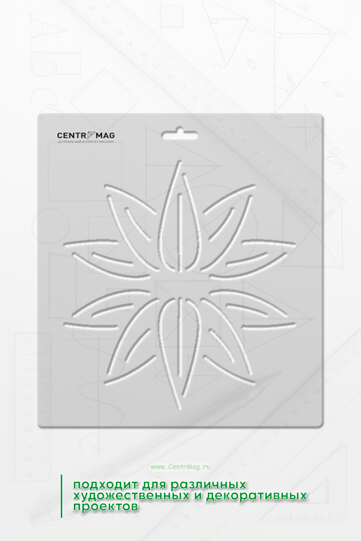 Трафарет представляет собой шаблон с изображением цветка, который идеально подходит для различных художественных и декоративных проектов. Он выполнен в простом, но элегантном дизайне, что позволяет легко использовать его как для новичков, так и для опытных мастеров