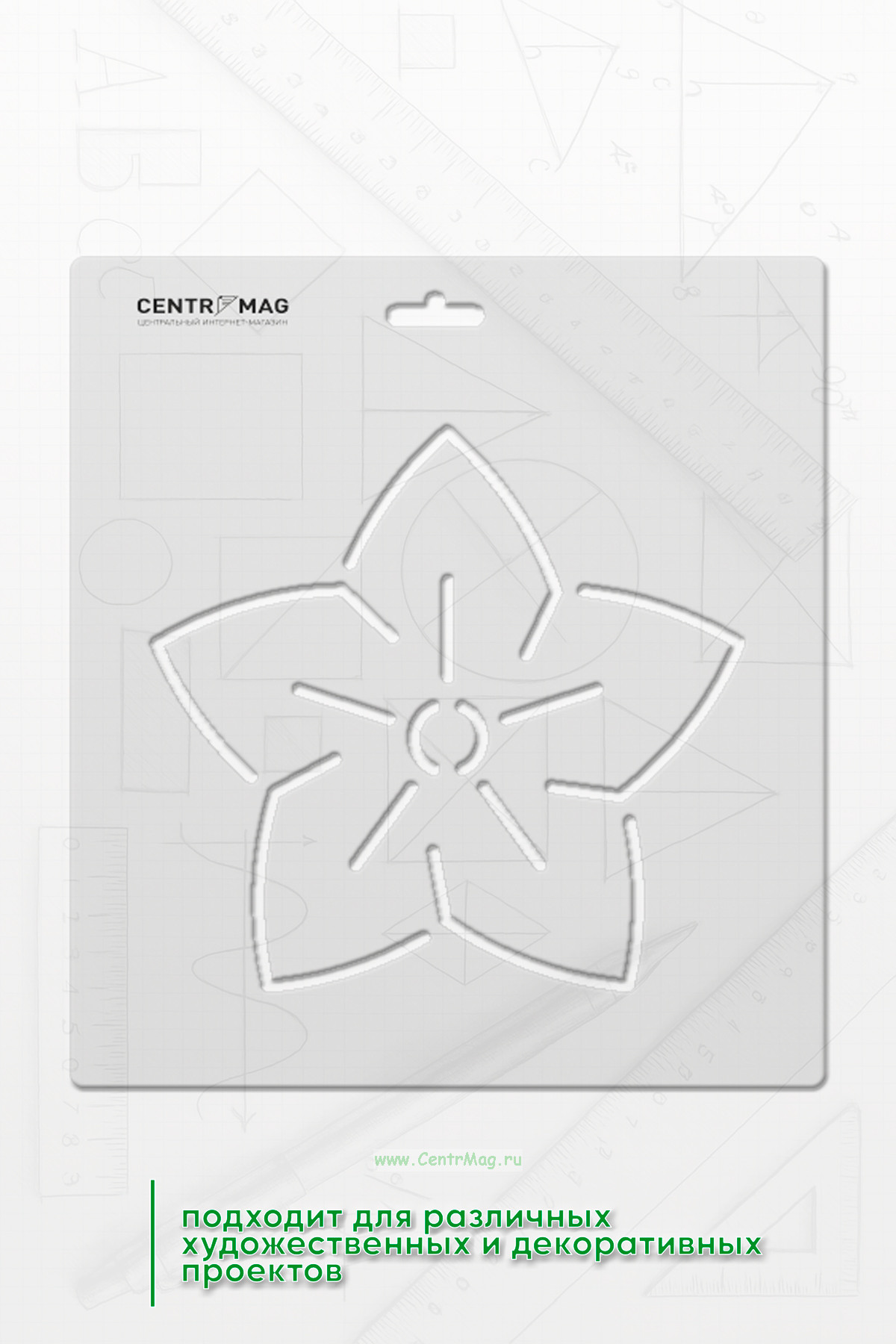 Трафарет представляет собой шаблон с изображением цветка, который идеально подходит для различных художественных и декоративных проектов. Он выполнен в простом, но элегантном дизайне, что позволяет легко использовать его как для новичков, так и для опытных мастеров