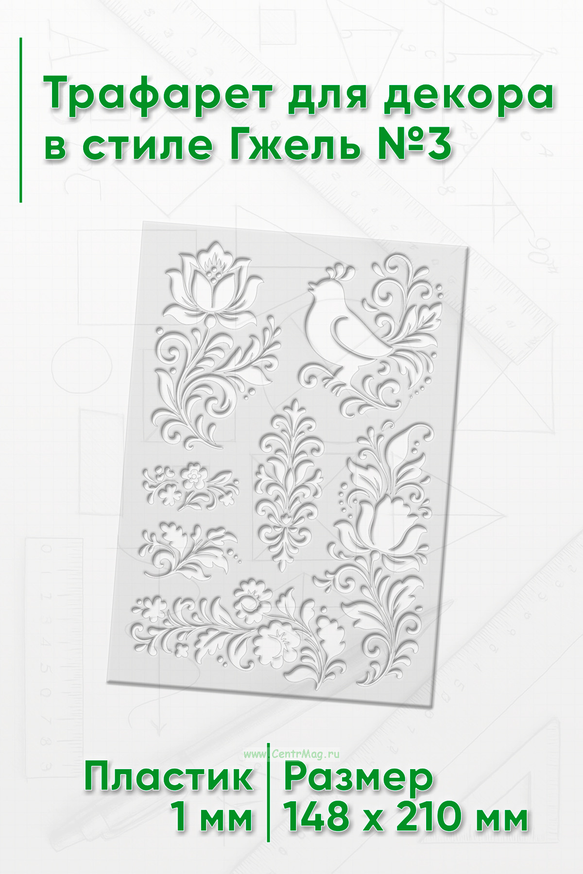 Трафарет для декора в стиле Гжель №6 (360 руб.)