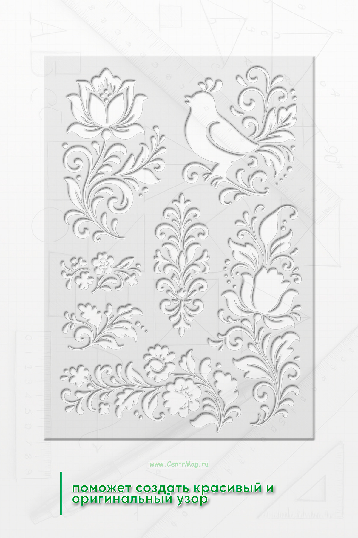 Линейка-трафарет "Роспись" № 1 (105 x 148 мм)
