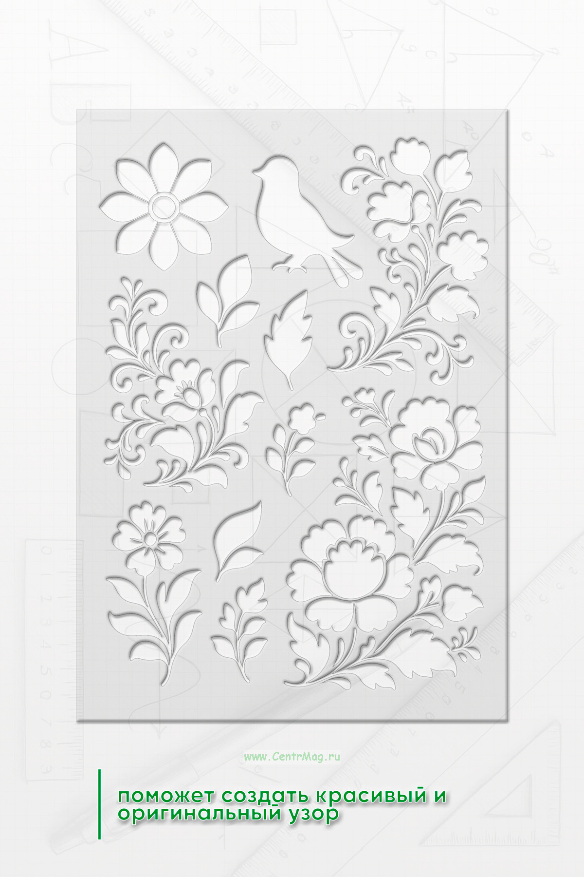 Трафарет поможет создать красивый и оригинальный узор. Идеально подходит для тех, кто хочет добавить индивидуальности своему творчеству.