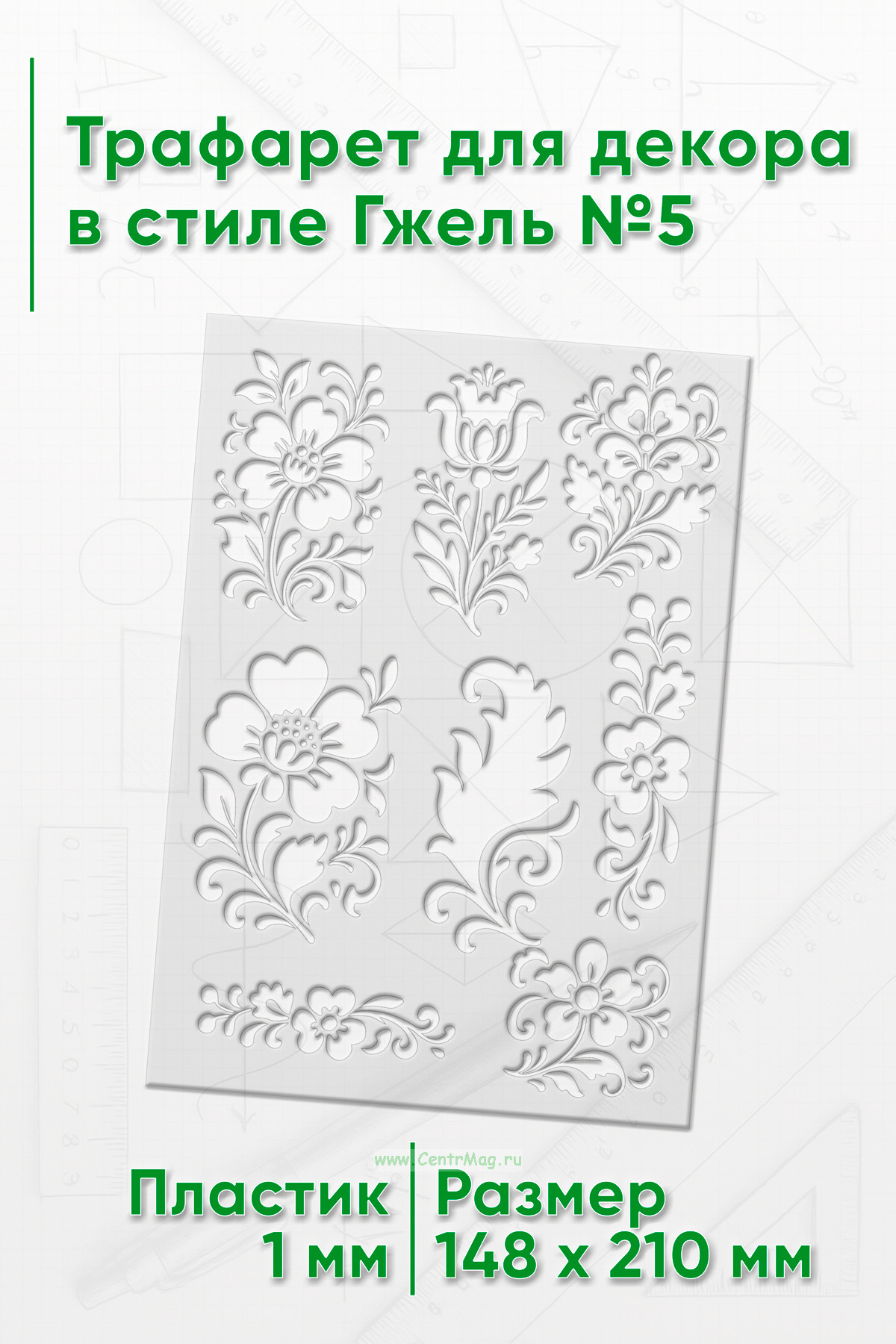 Линейка-трафарет "Роспись" № 1 (105 x 148 мм)
