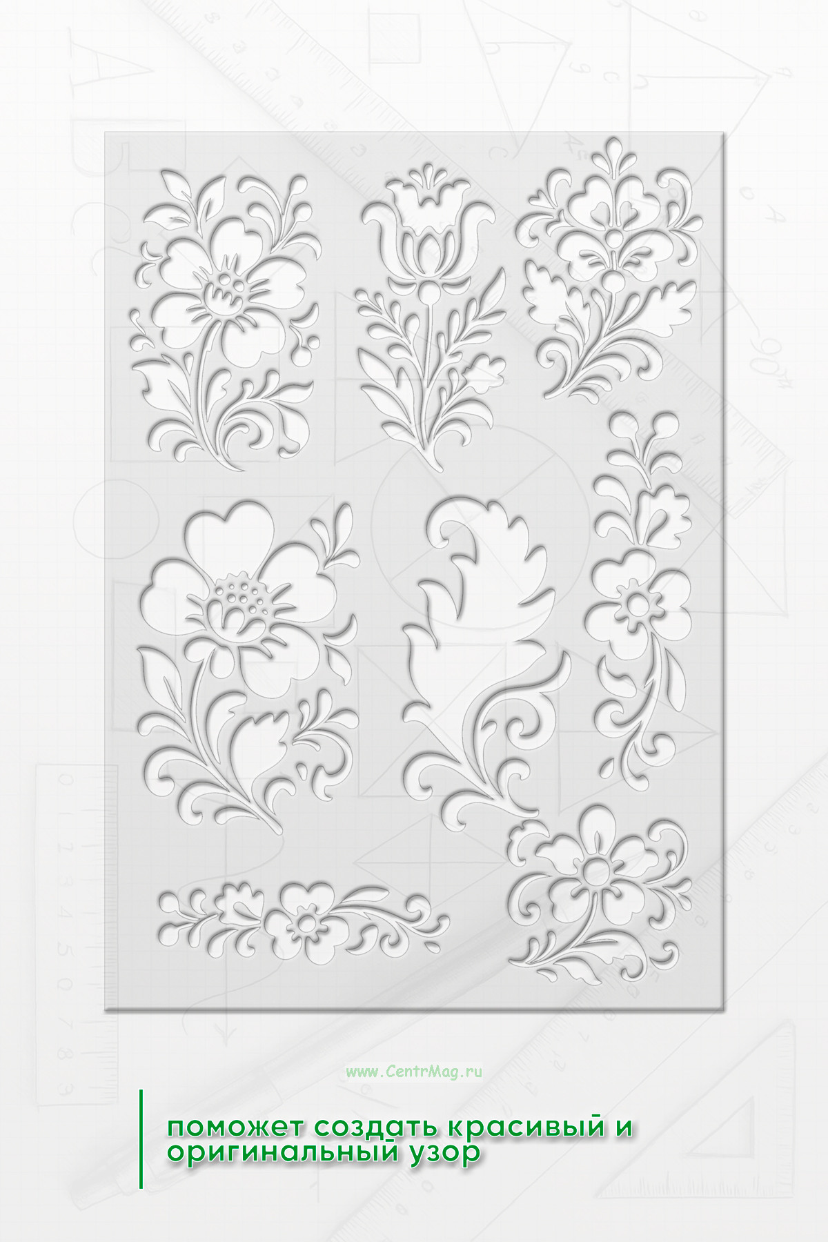 Трафарет поможет создать красивый и оригинальный узор. Идеально подходит для тех, кто хочет добавить индивидуальности своему творчеству.