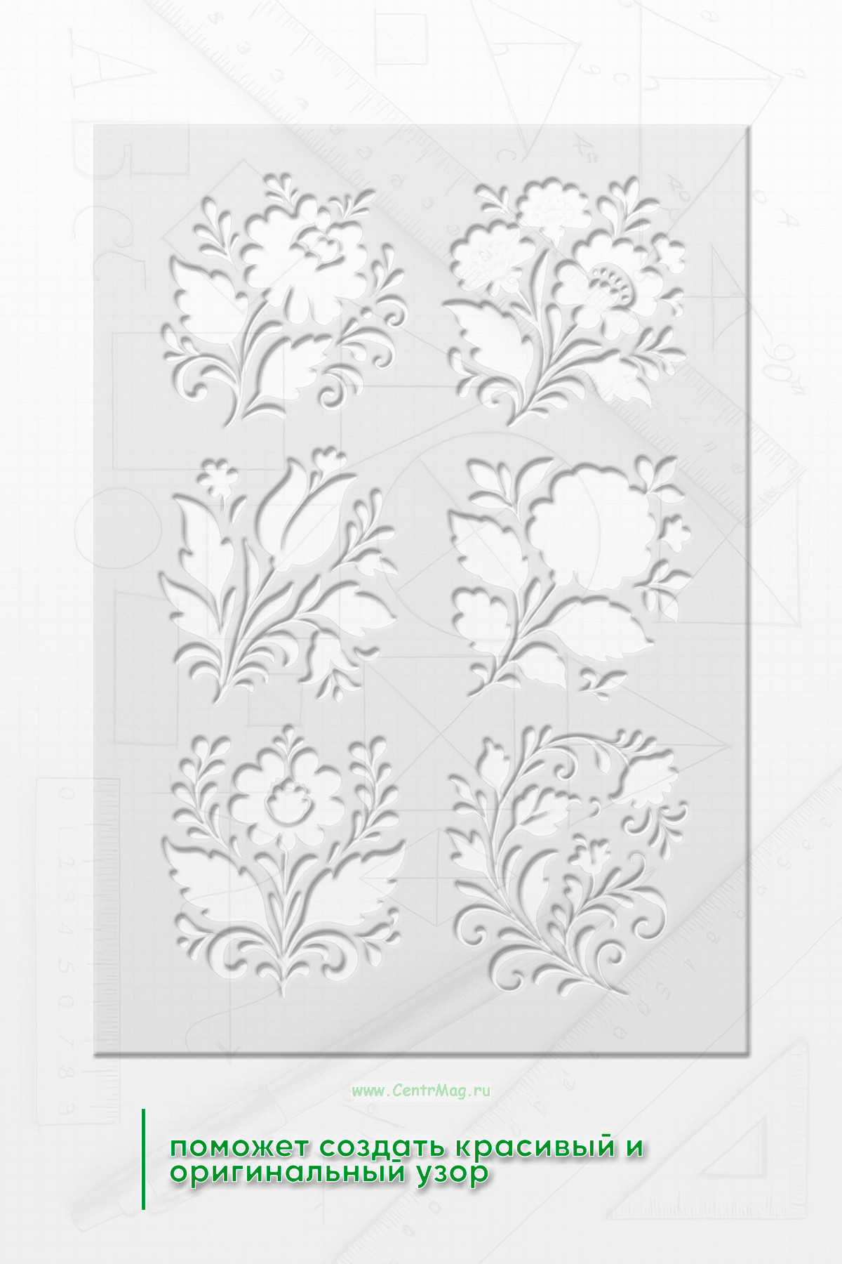 Трафарет поможет создать красивый и оригинальный узор. Идеально подходит для тех, кто хочет добавить индивидуальности своему творчеству.