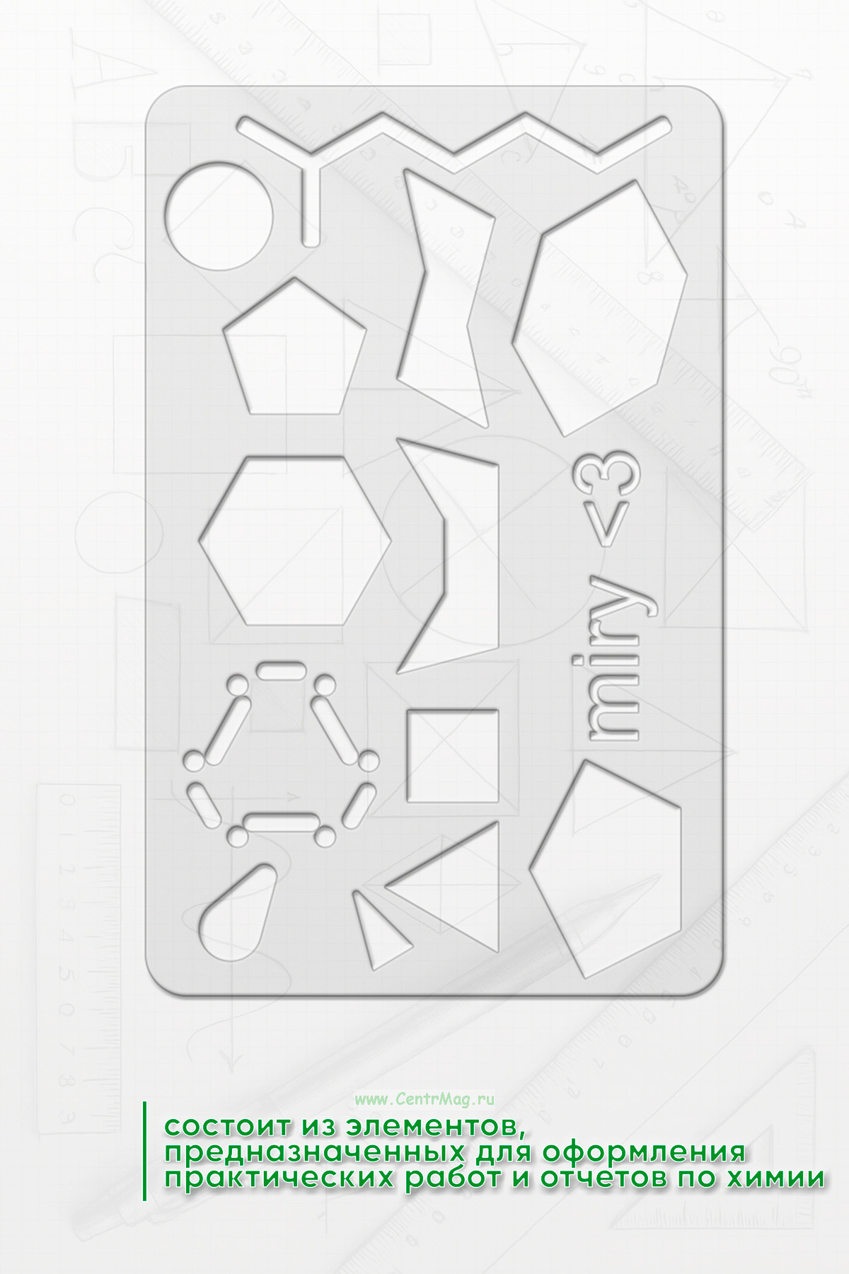 Трафарет состоит из элементов, предназначенных для оформления практических работ и отчетов по химии