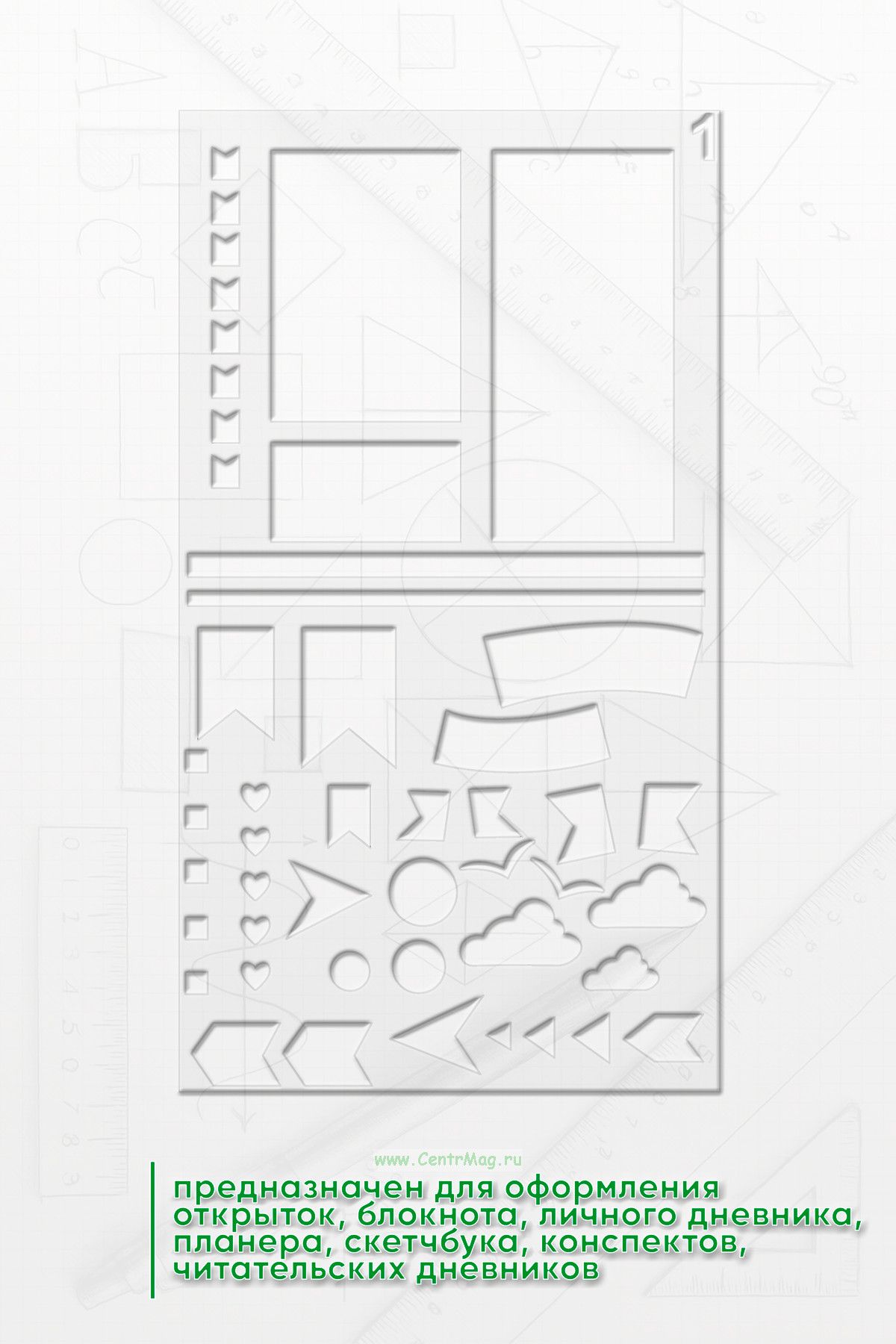 Трафарет предназначен для оформления открыток, блокнота, личного дневника, планера, скетчбука, конспектов, читательских дневников