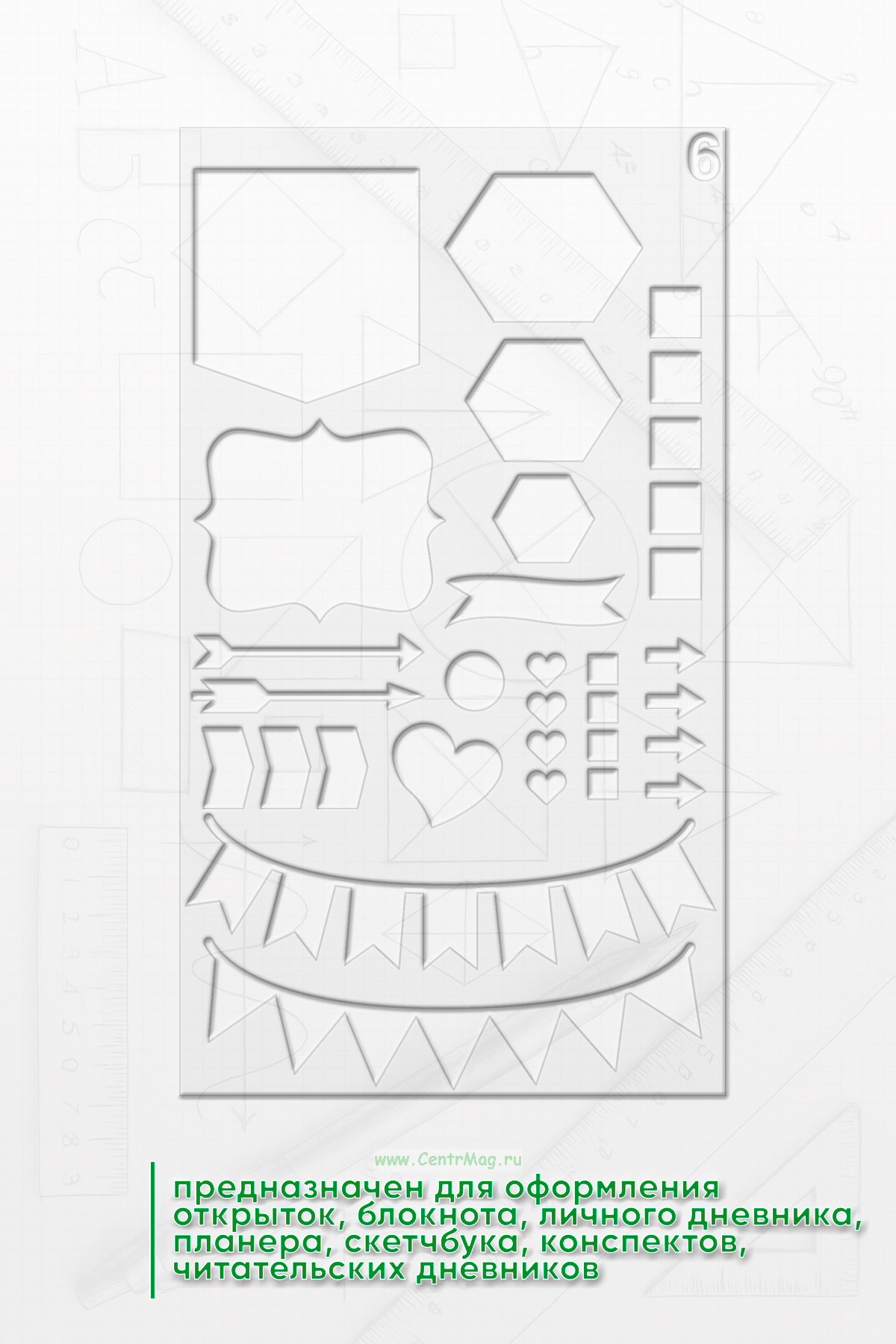 Трафарет предназначен для оформления открыток, блокнота, личного дневника, планера, скетчбука, конспектов, читательских дневников