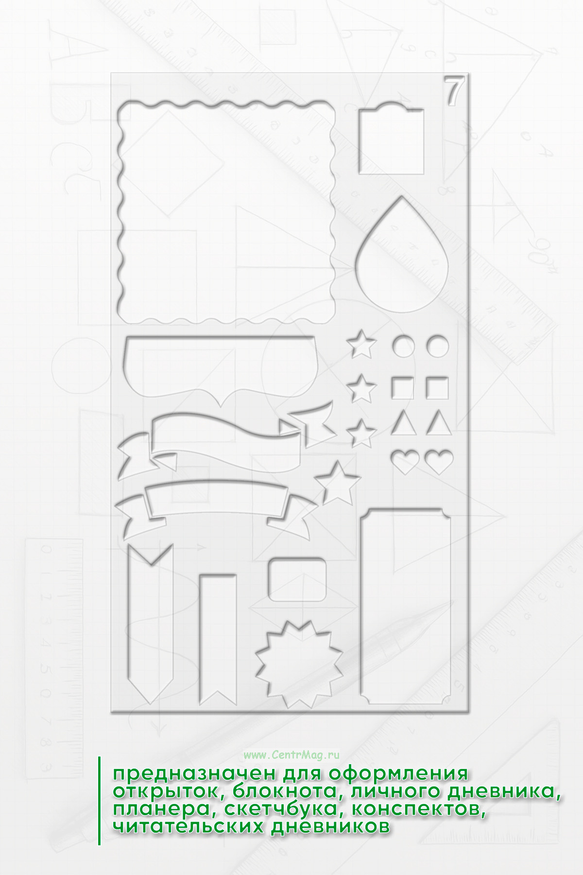 Трафарет предназначен для оформления открыток, блокнота, личного дневника, планера, скетчбука, конспектов, читательских дневников