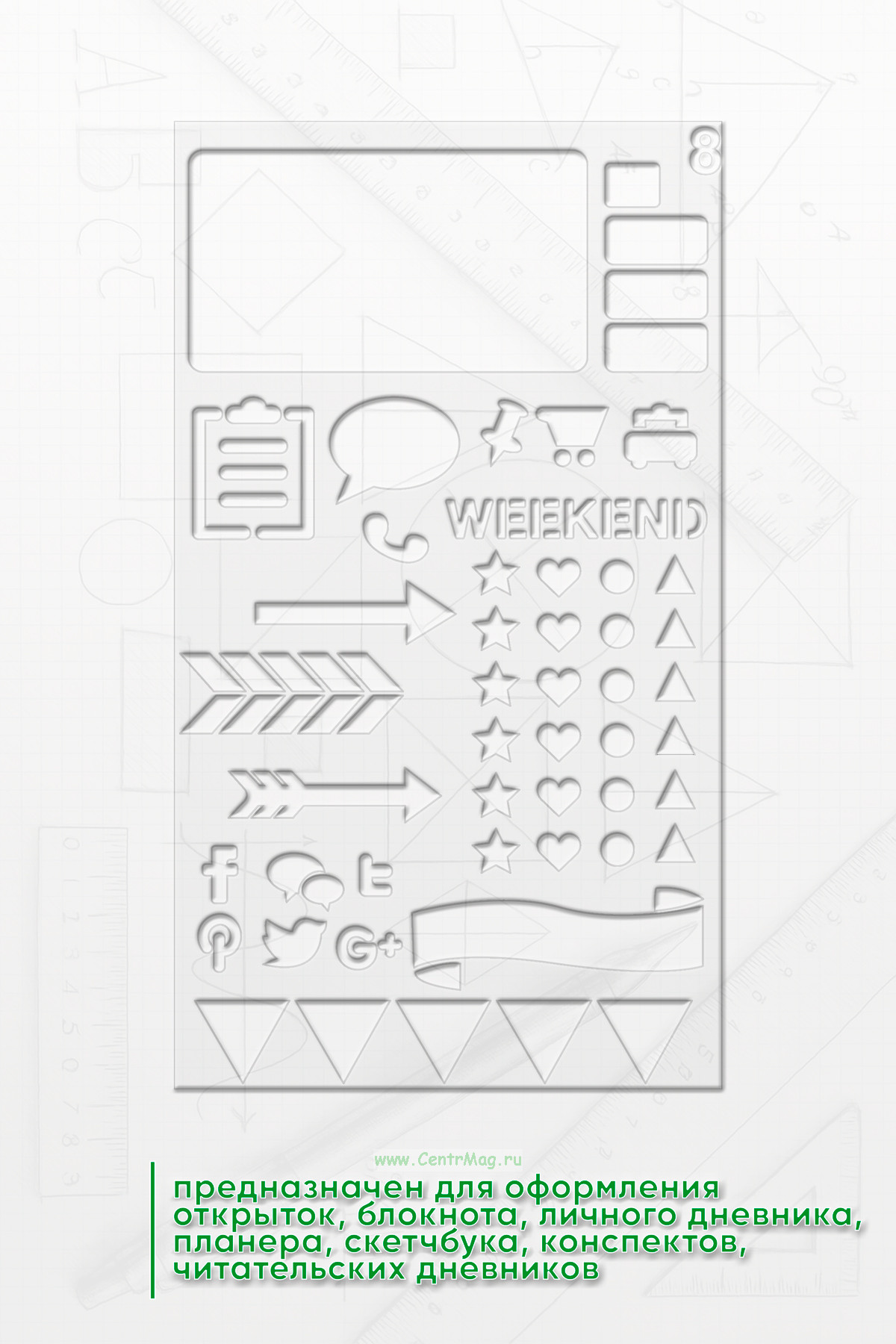Трафарет предназначен для оформления открыток, блокнота, личного дневника, планера, скетчбука, конспектов, читательских дневников