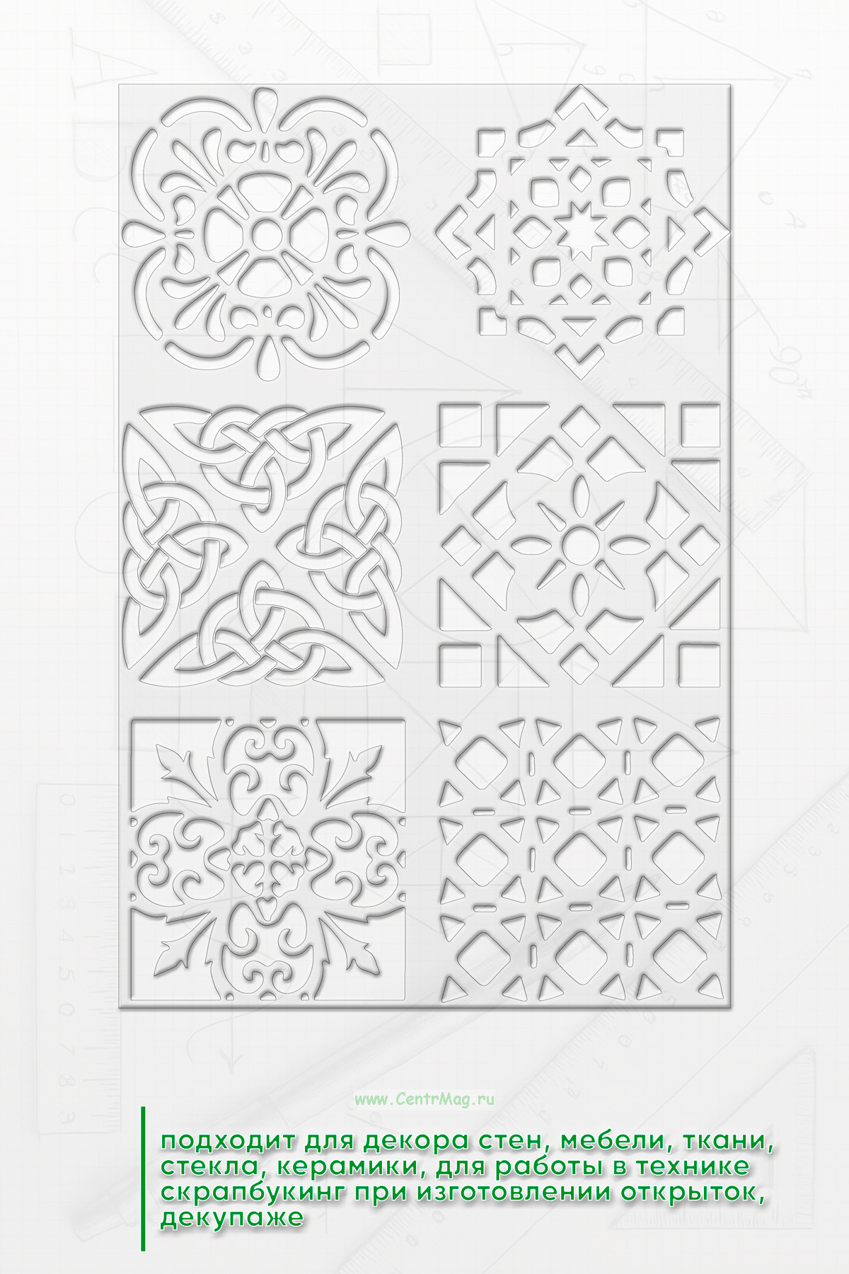 Трафарет подходит для декора стен, мебели, ткани, стекла, керамики, для работы в технике скрапбукинг при изготовлении открыток, декупаже