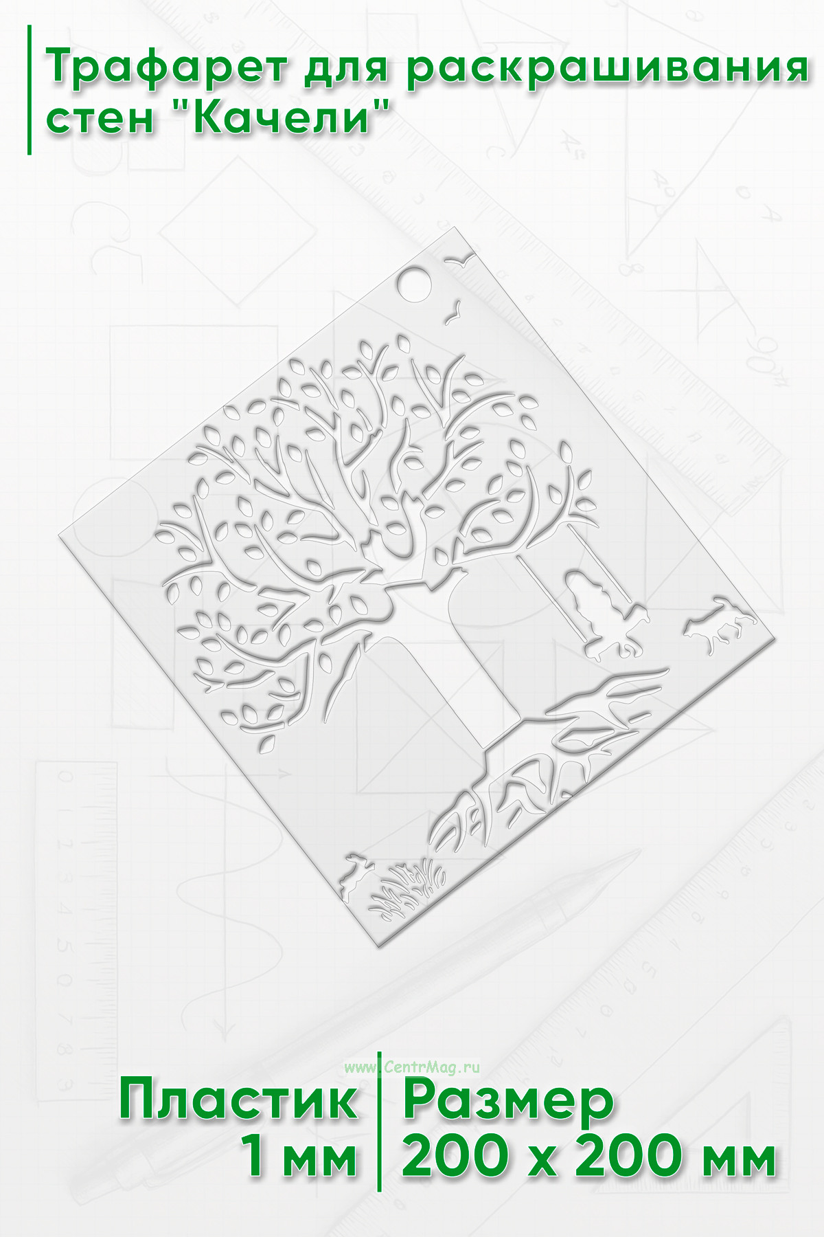 Трафарет для раскрашивания стен "Качели", 20х20 см