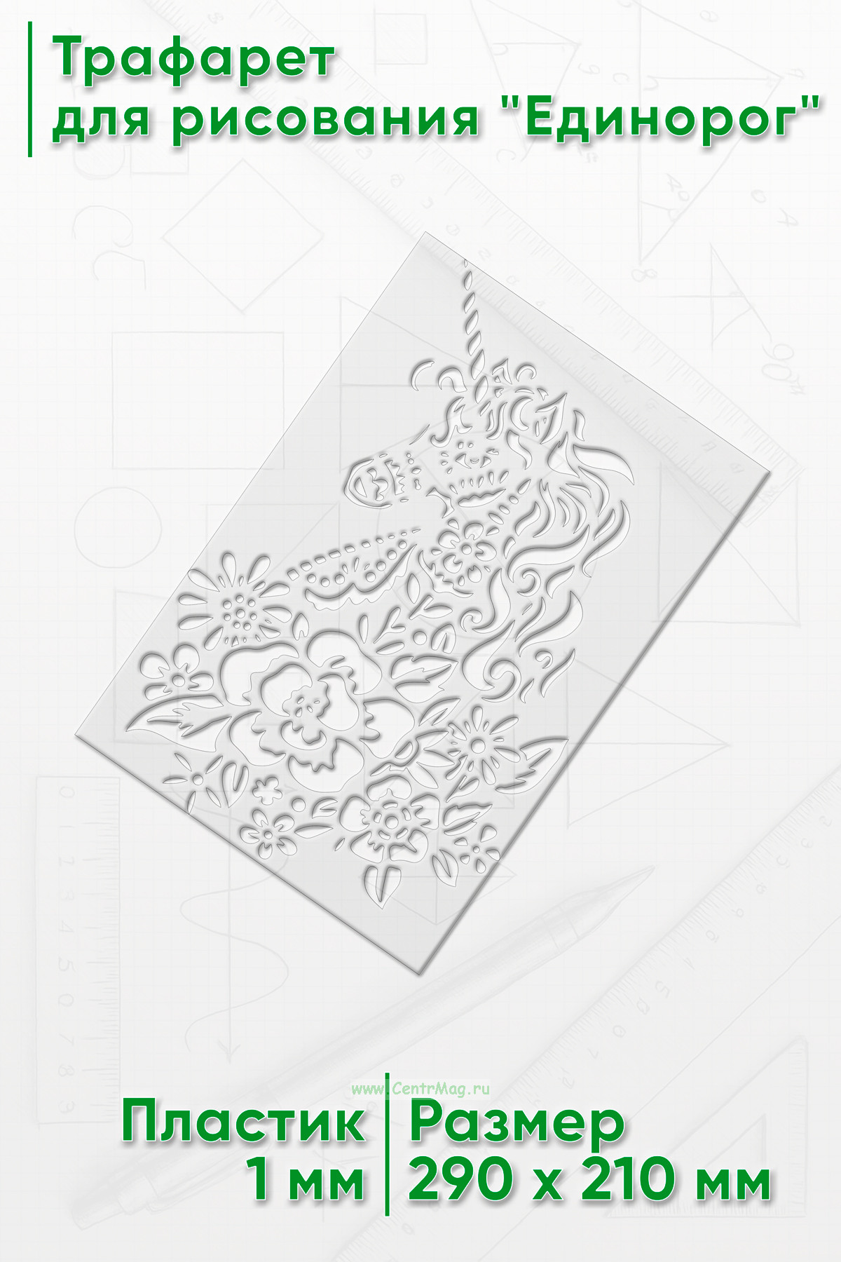 Трафарет для рисования "Единорог", 21х29 см