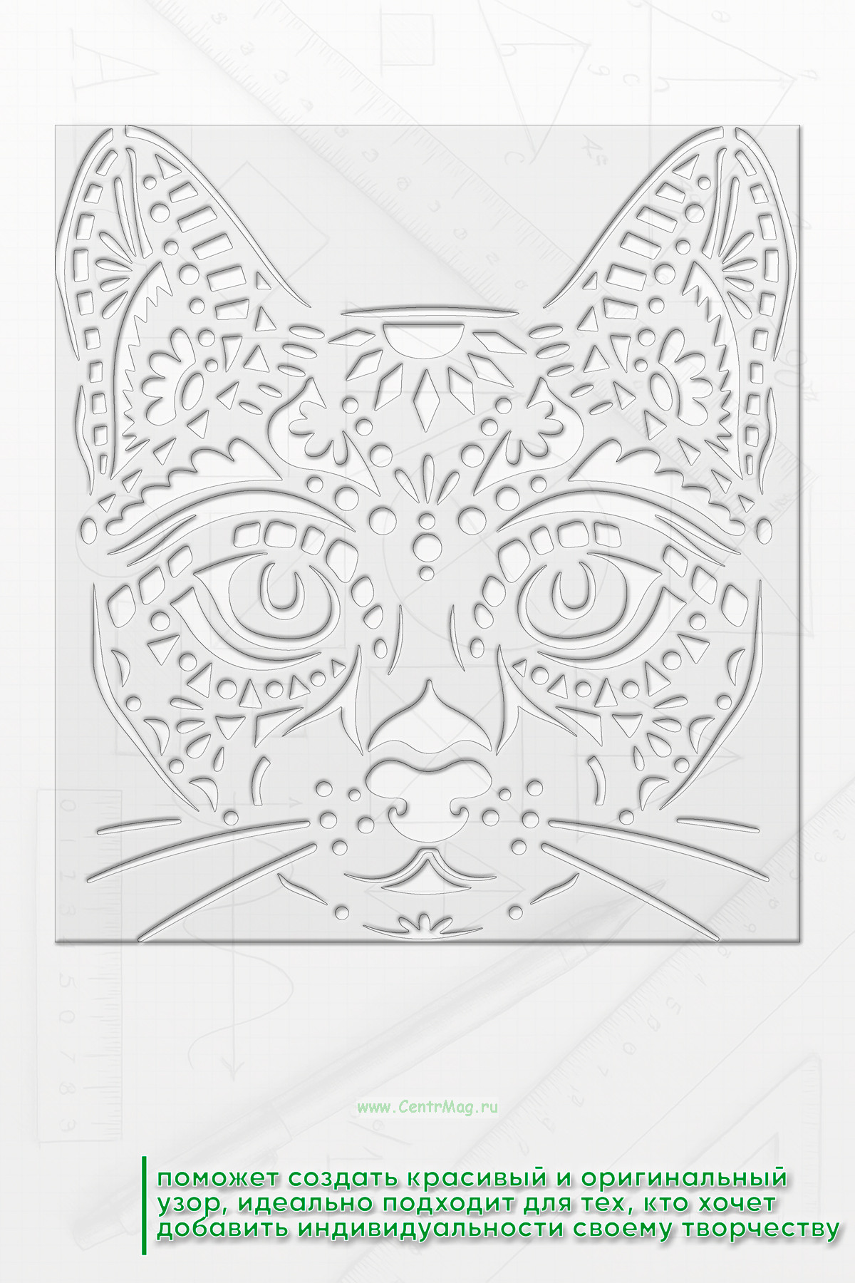 Трафарет поможет создать красивый и оригинальный узор. Идеально подходит для тех, кто хочет добавить индивидуальности своему творчеству.