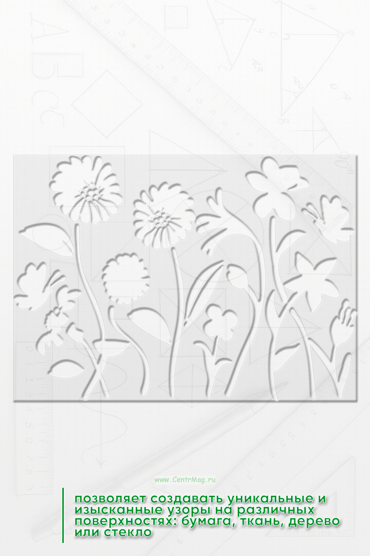 Трафарет - это отличный инструмент для творчества и декорирования. Трафарет позволяет создавать уникальные и изысканные узоры на различных поверхностях: бумага, ткань, дерево или стекло. Возможно использовать для оформления открыток, альбомов, для работы красками, спреями, чернилами