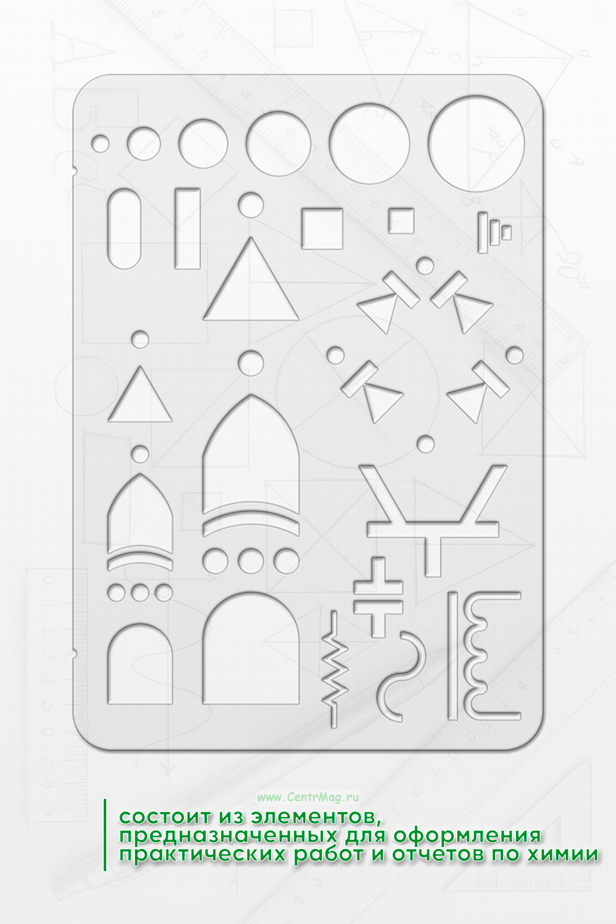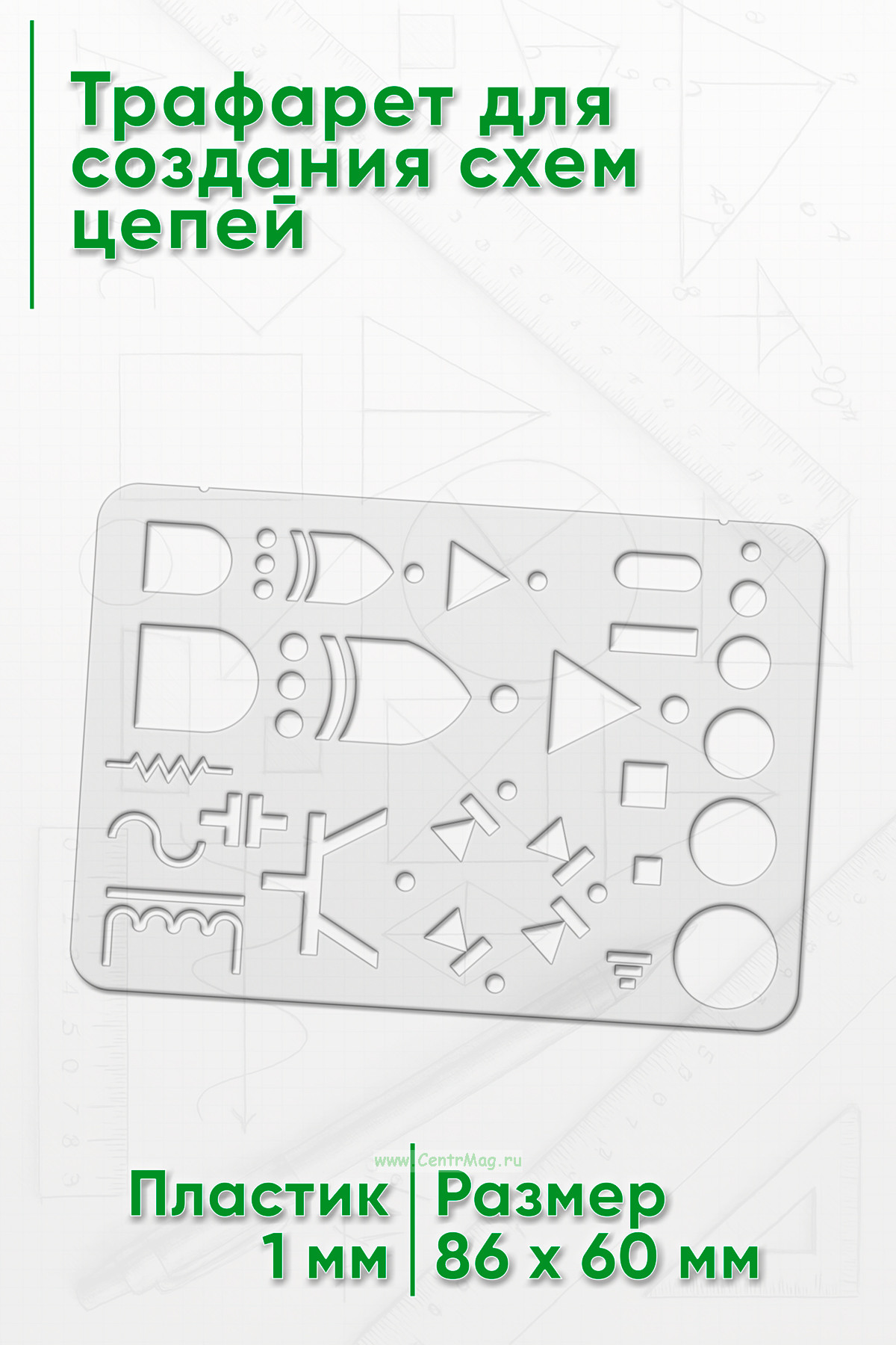 Трафарет состоит из необходимого количества элементов, предназначенных для построения схем и оформления практических работ/отчетов