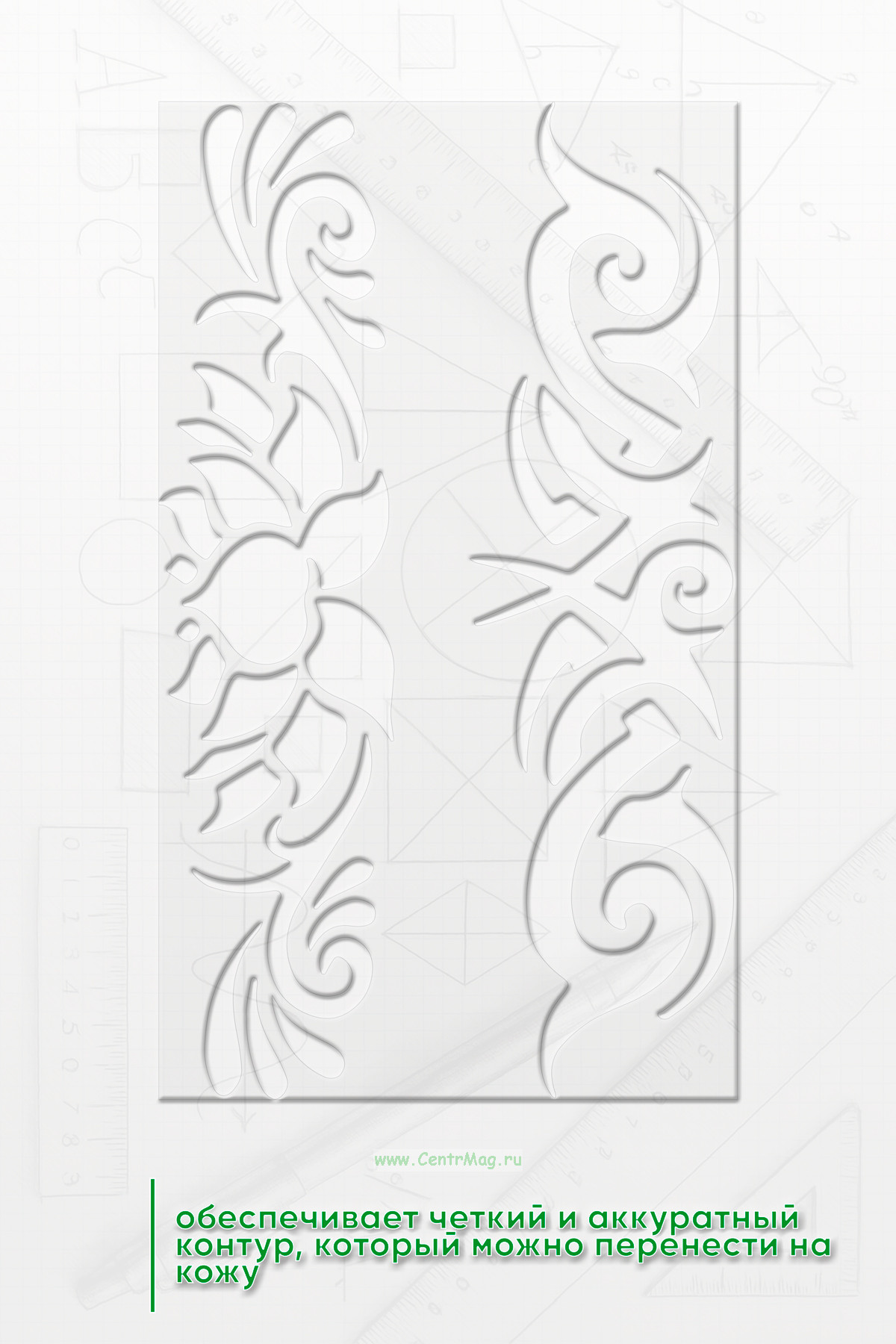 Трафарет для татуировки в боди-арте обеспечивает четкий и аккуратный контур, который можно перенести на кожу.Сокращает время на подготовительные этапы, такие как прорисовка вручную.