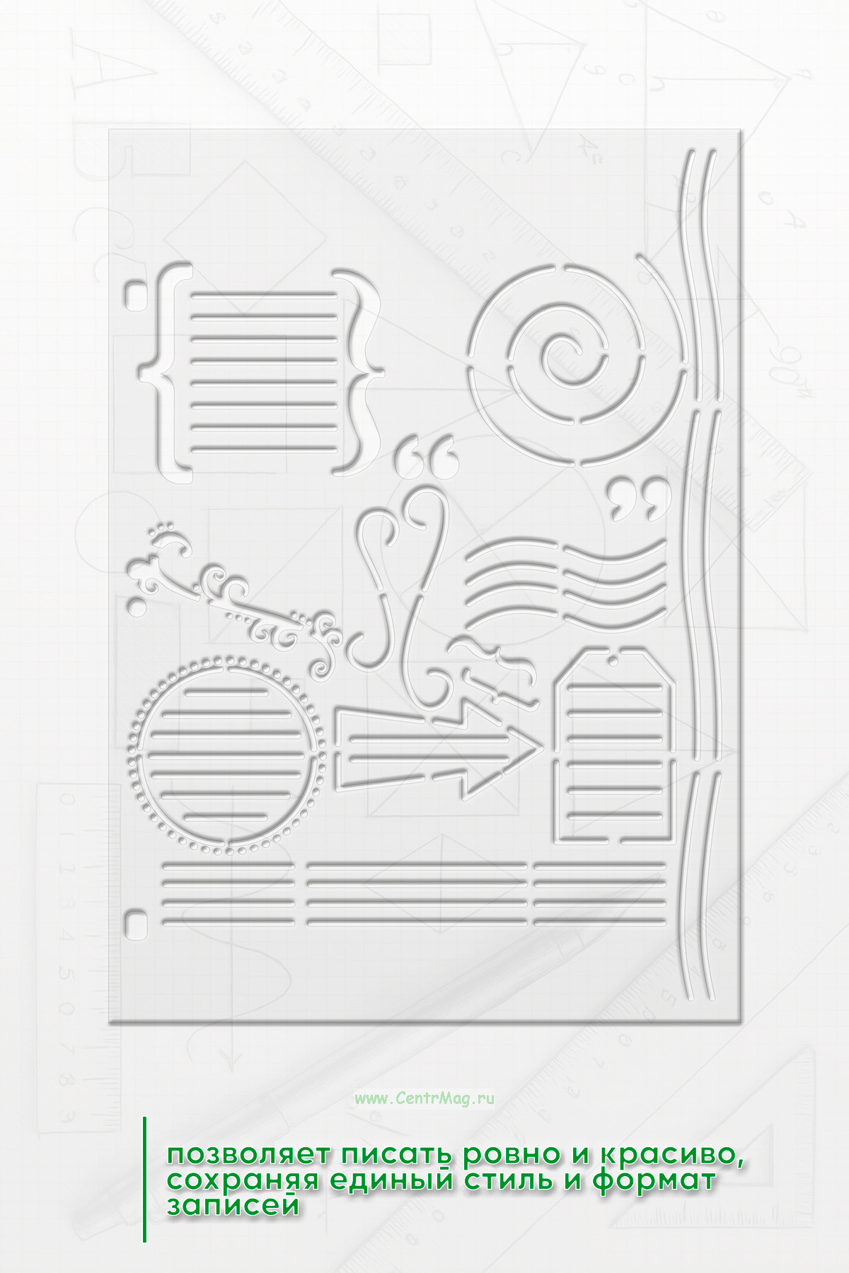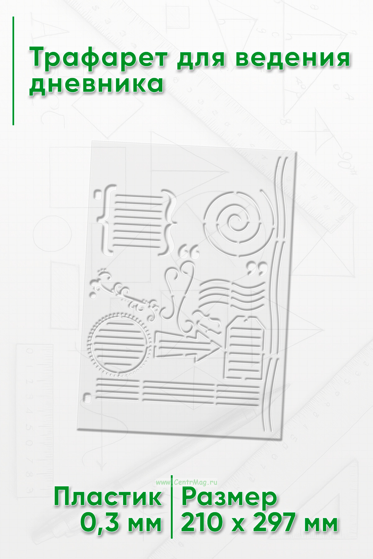 Трафарет для ведения дневника позволяет писать ровно и красиво, сохраняя единый стиль и формат записей.Создает аккуратную и структурированную документацию, что важно для контроля, отчетности и анализа информации.