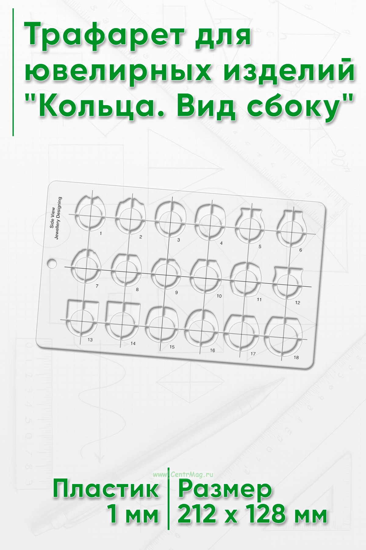 Трафарет для ювелирных изделий "Кольца. Вид сбоку"