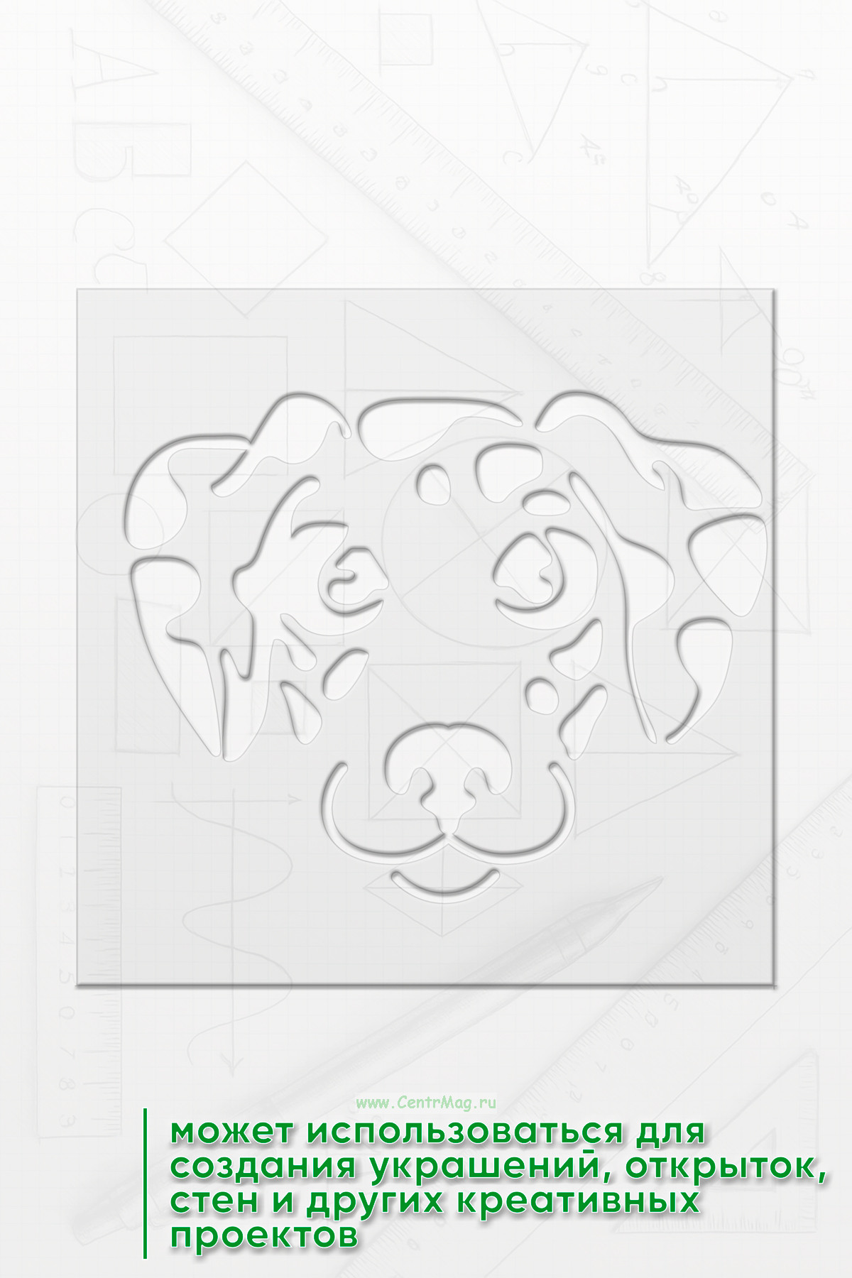 Трафарет предназначен для использования в искусстве, декоре, рукоделии и аэрографии, позволяя быстро и аккуратно наносить изображение на различные поверхности. Он также может использоваться для создания украшений, открыток, стен и других креативных проектов.