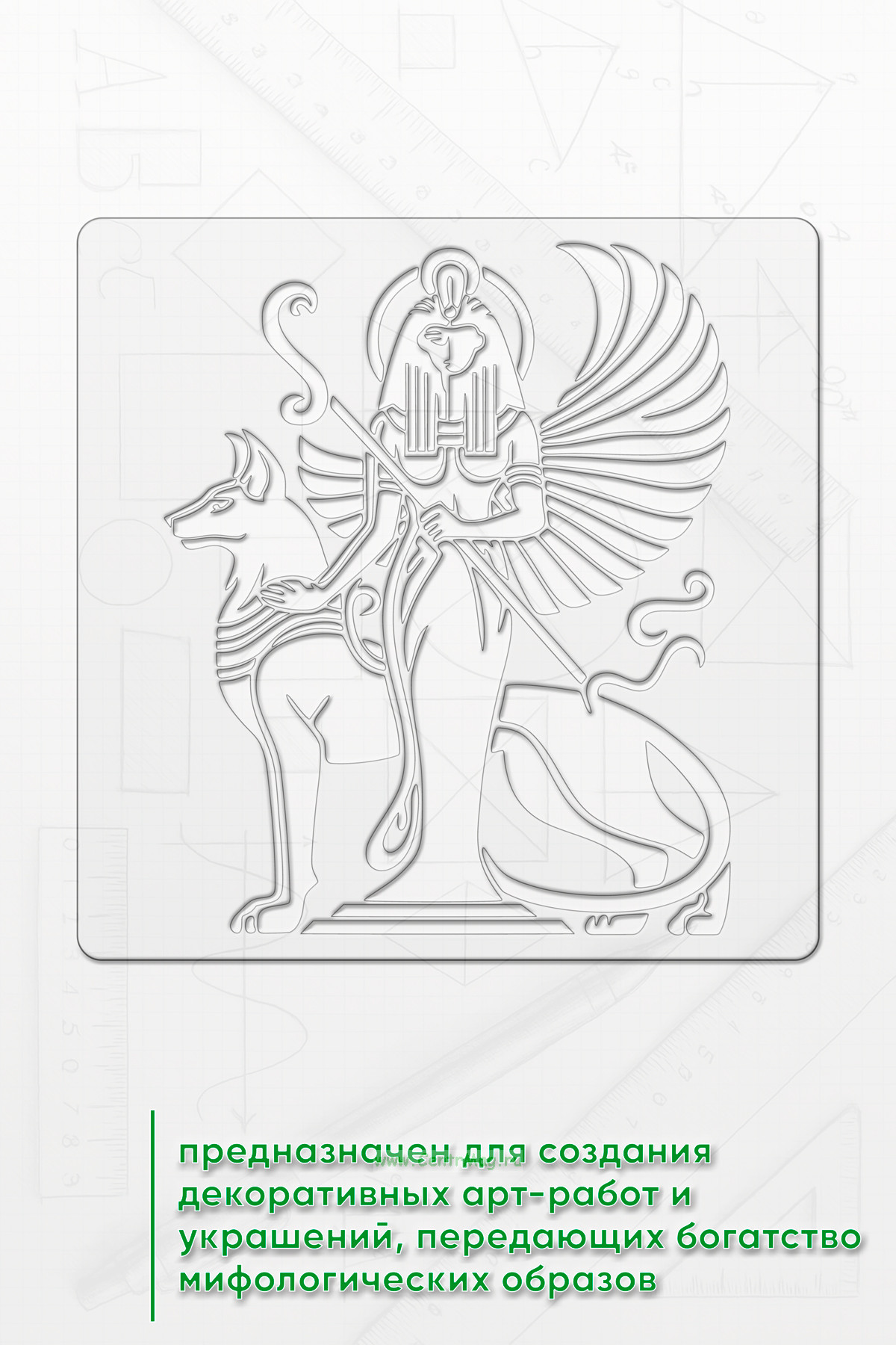 Трафарет с изображениями древнеегипетской мифологии предназначен для создания декоративных арт-работ и украшений, передающих богатство мифологических образов. Он помогает в визуализации божеств, символов и сюжетов для образовательных, творческих или религиозных целей.