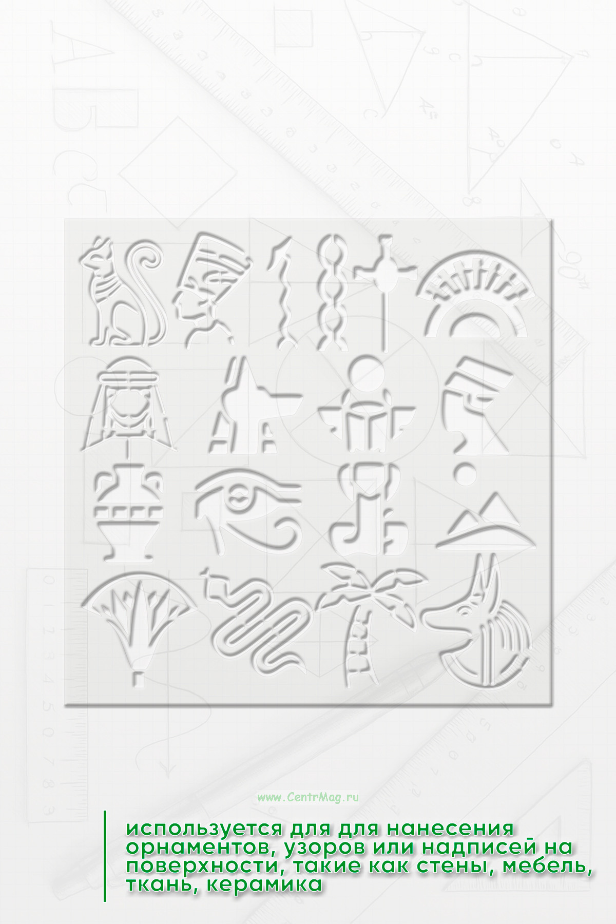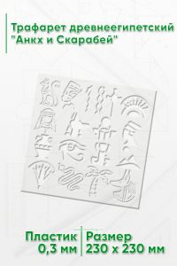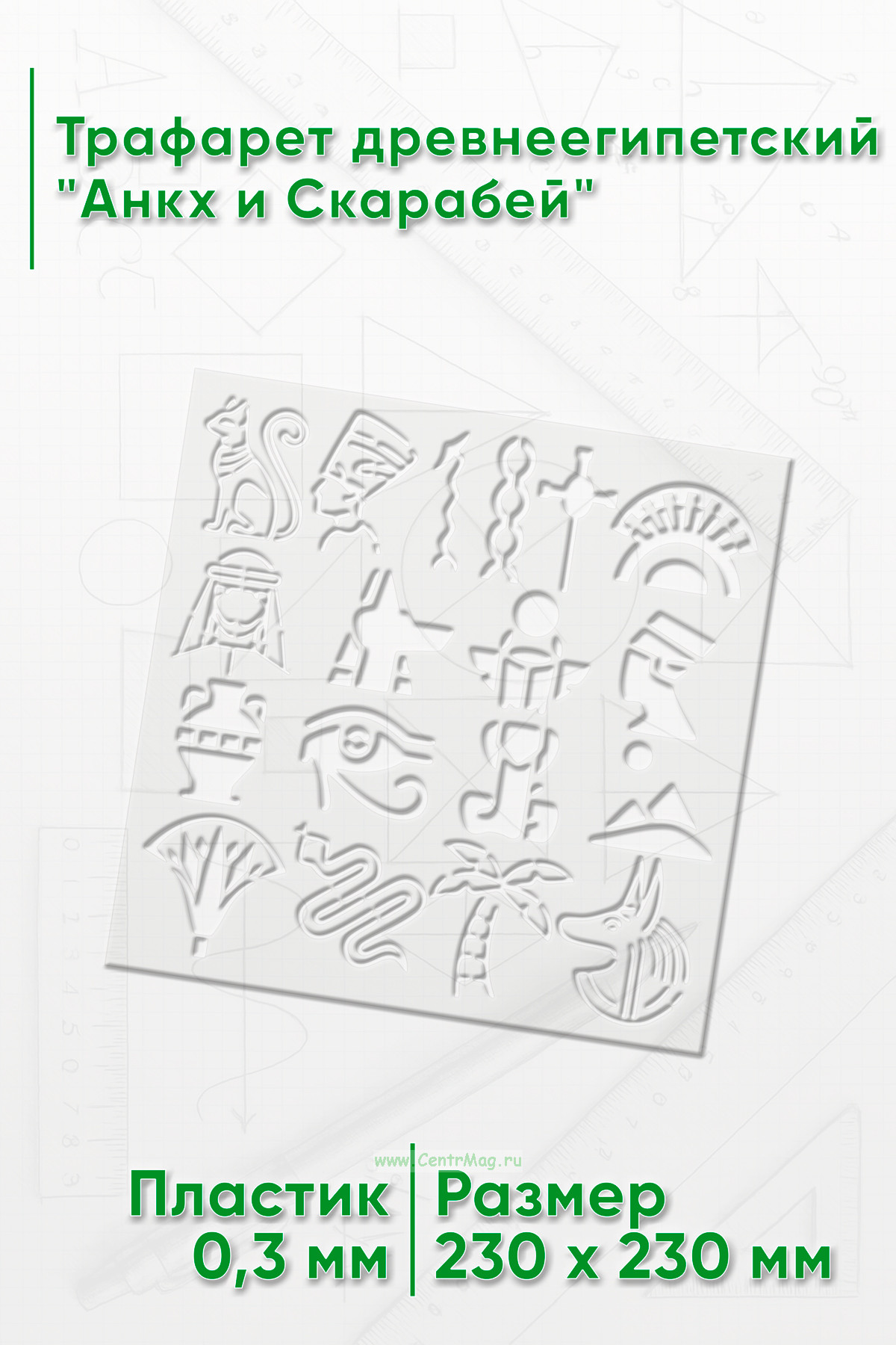 Трафарет древнеегипетский "Анкх и Скарабей" предназначен для создания изображений или надписей с мотивами, связанными с фараонами, древним Египтом или египетской символикой