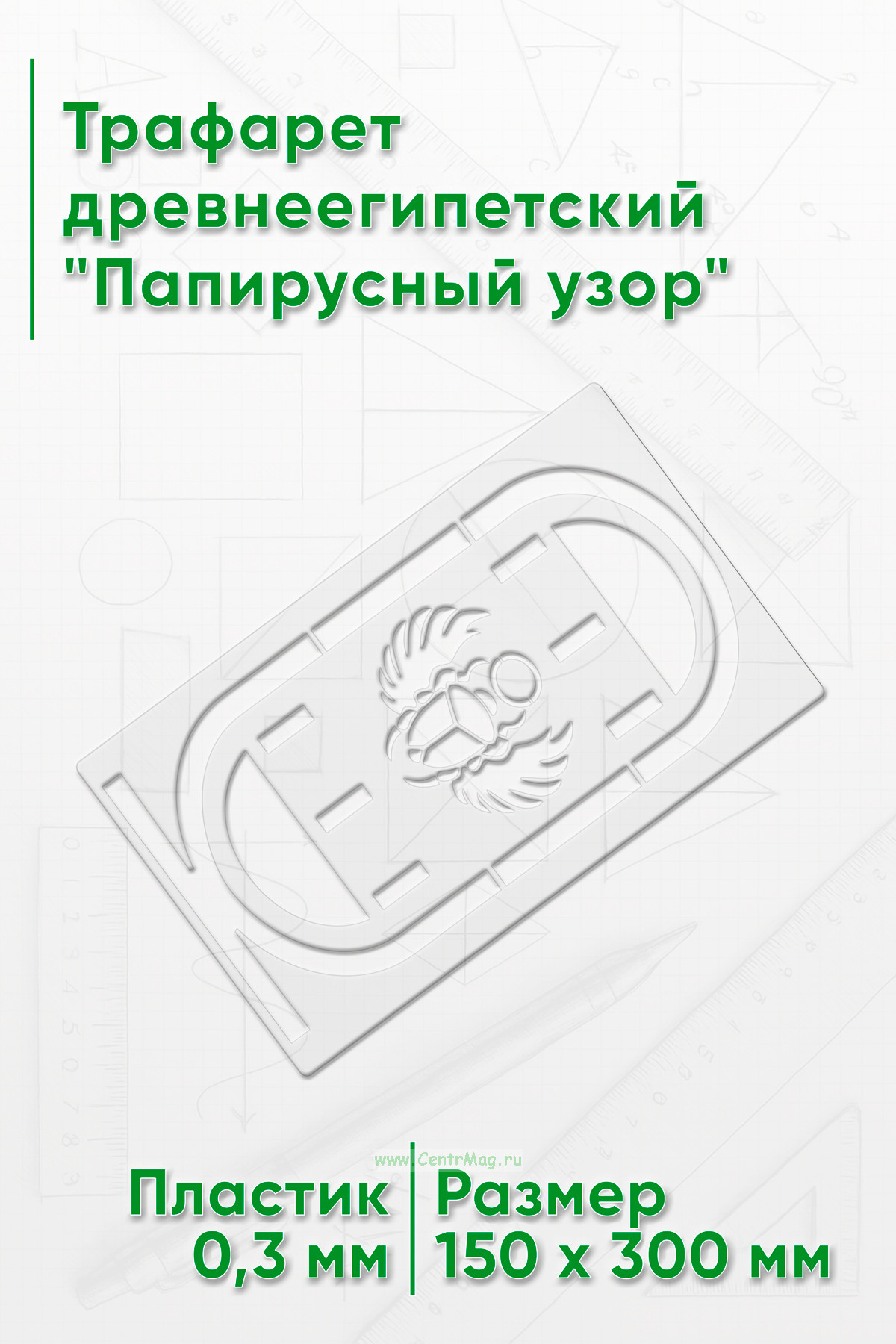 Трафарет древнеегипетский "Папирусный узор" предназначен для создания изображений или надписей с мотивами, связанными с фараонами, древним Египтом или египетской символикой