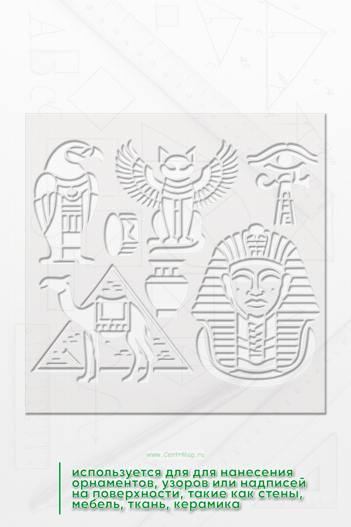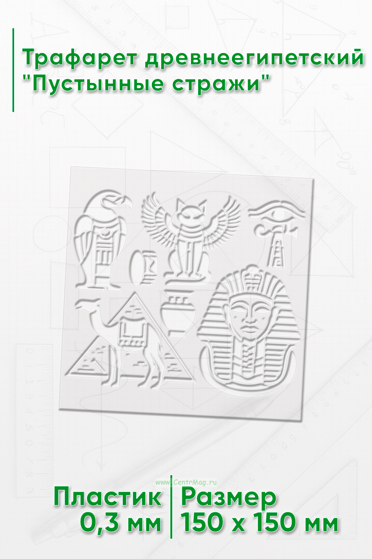 Трафарет древнеегипетский "Пустынные стражи" предназначен для создания изображений или надписей с мотивами, связанными с фараонами, древним Египтом или египетской символикой