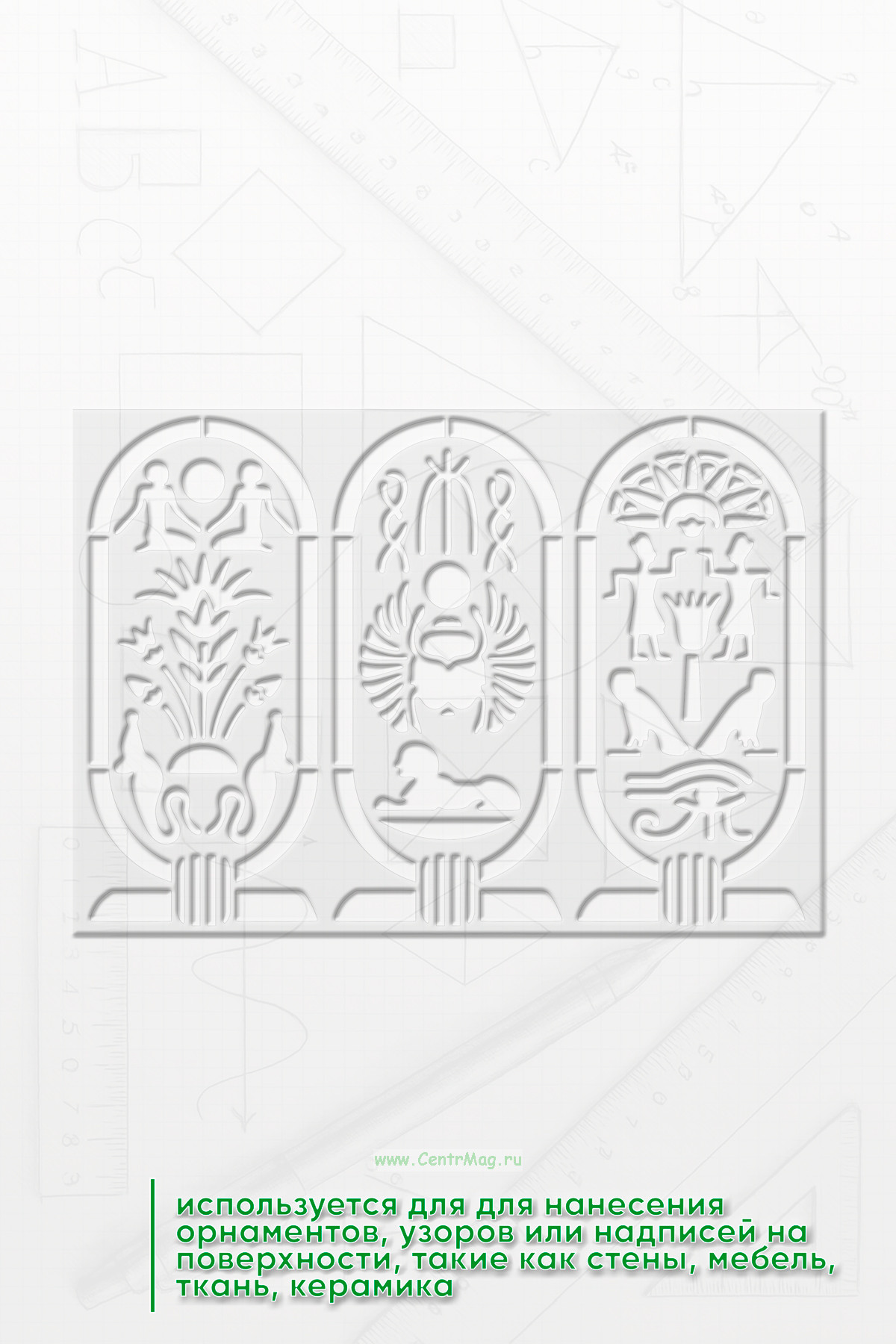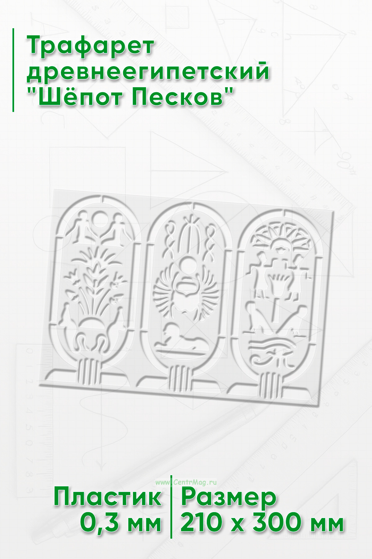 Трафарет древнеегипетский "Шёпот Песков" предназначен для создания изображений или надписей с мотивами, связанными с фараонами, древним Египтом или египетской символикой