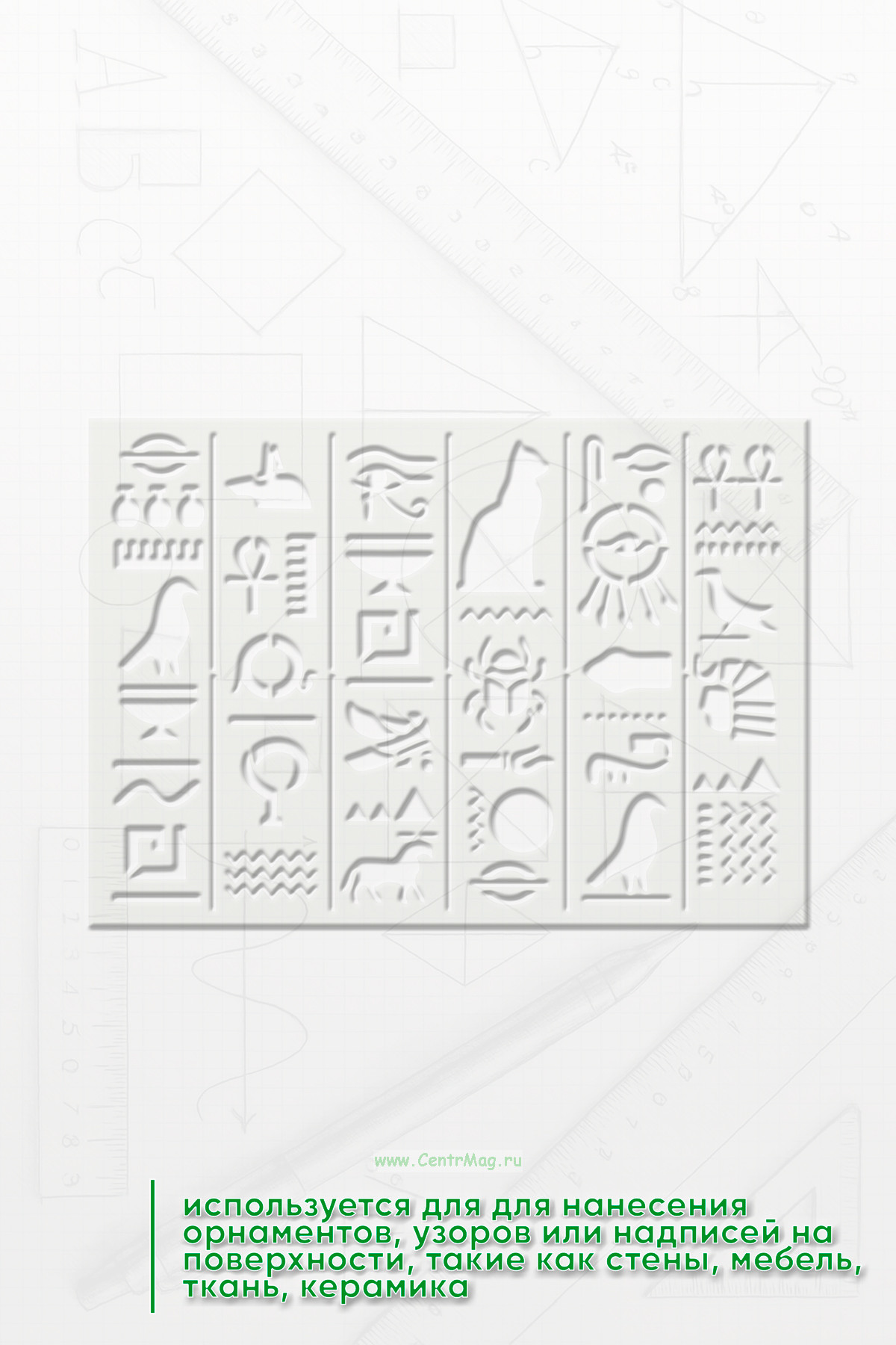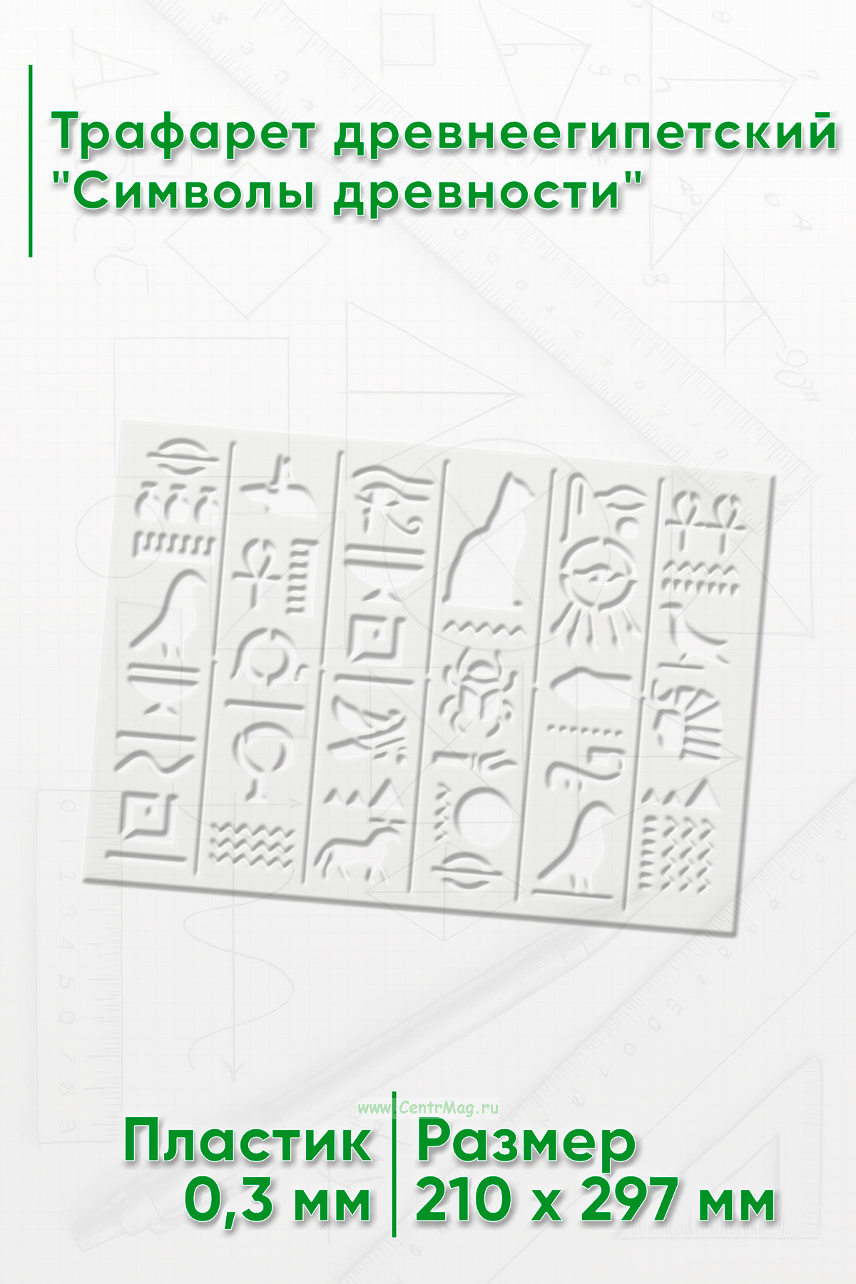 Трафарет древнеегипетский "Символы древности" предназначен для создания изображений или надписей с мотивами, связанными с фараонами, древним Египтом или египетской символикой
