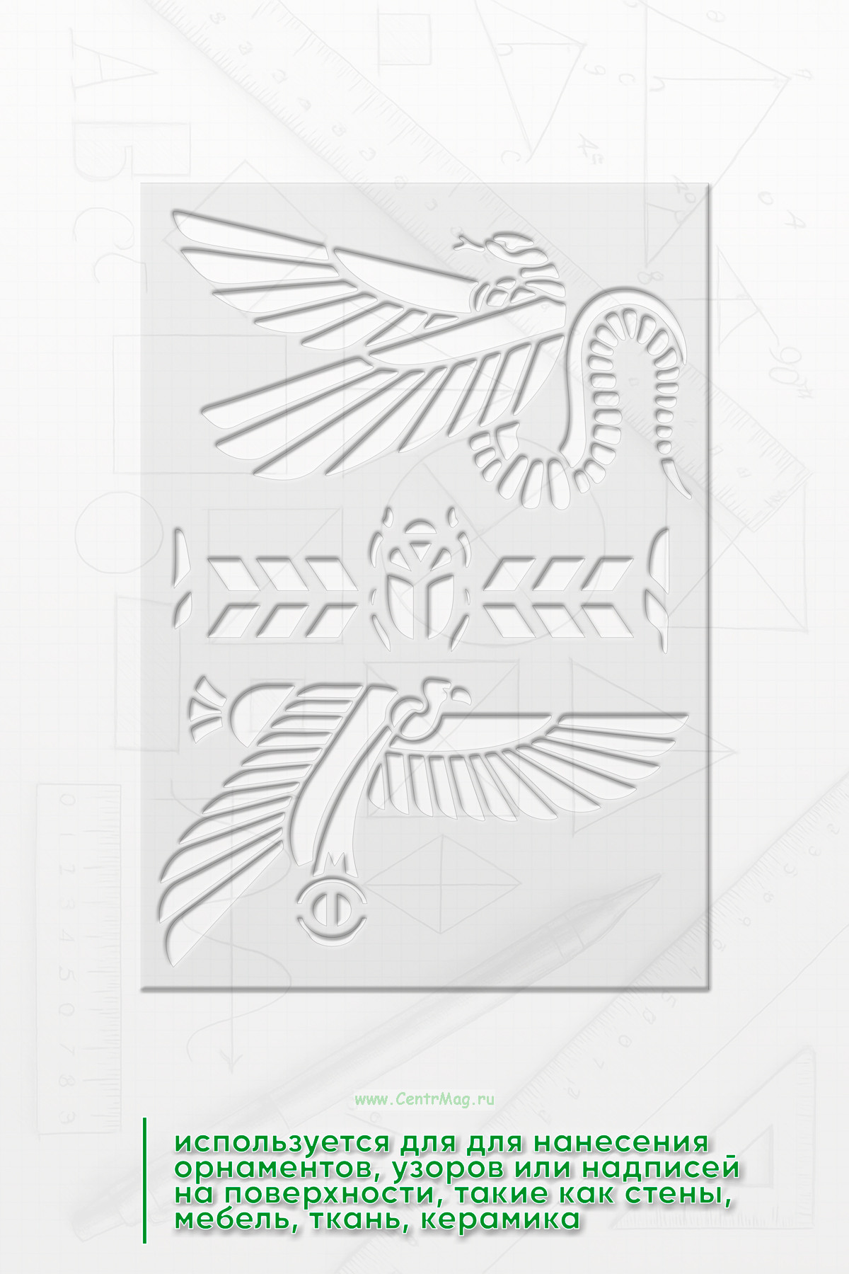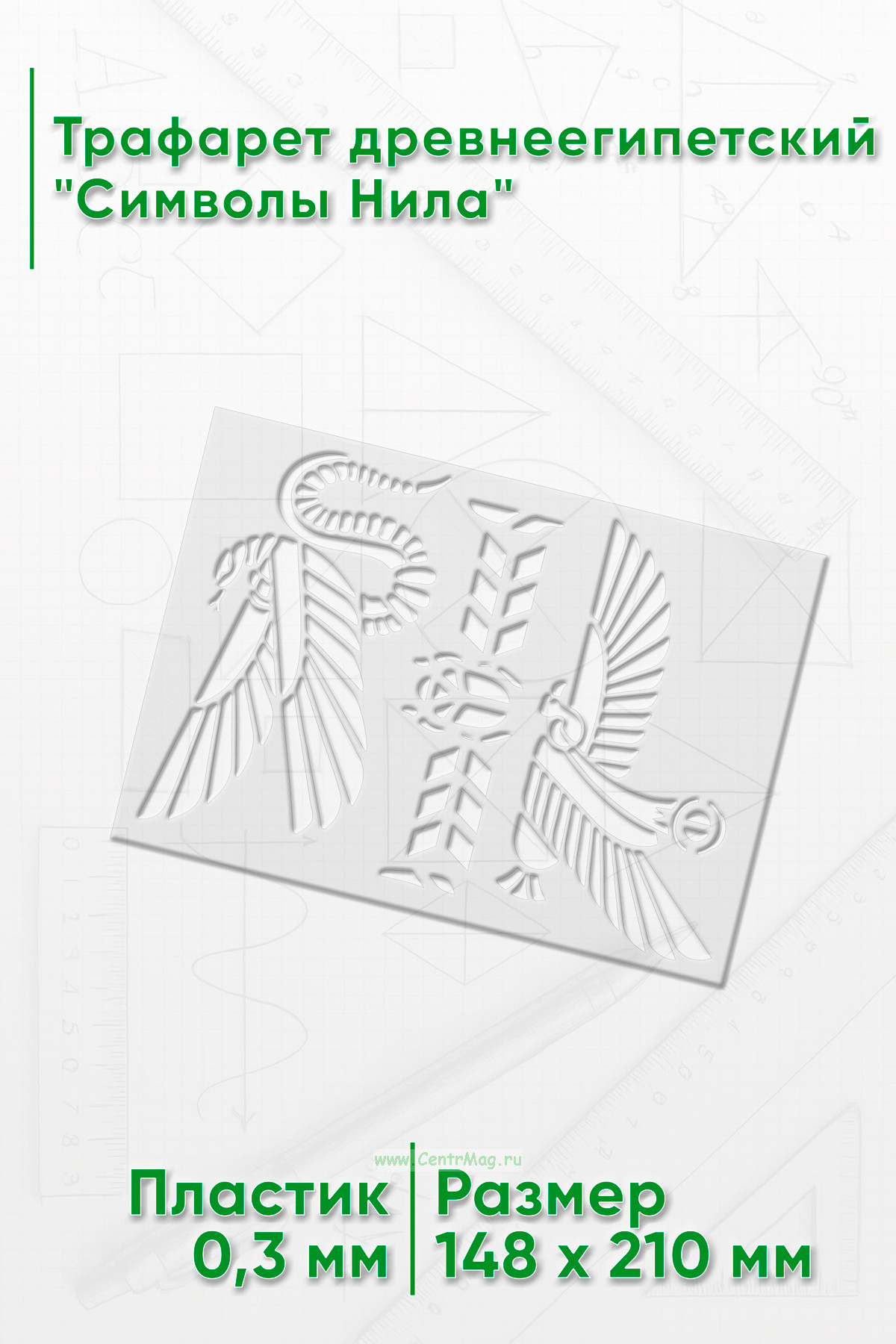 Трафарет древнеегипетский "Символы Нила" предназначен для создания изображений или надписей с мотивами, связанными с фараонами, древним Египтом или египетской символикой