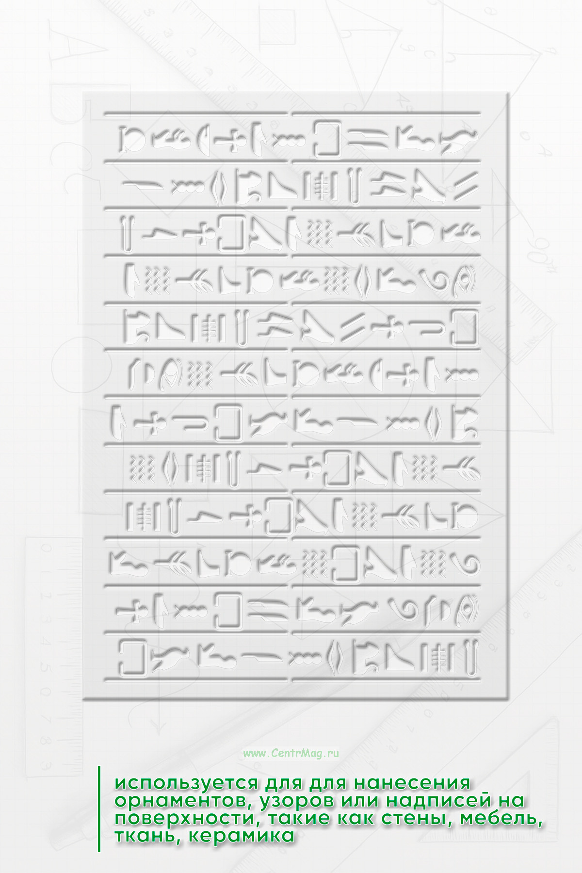 Трафарет древнеегипетский "Триптих Пирамид" предназначен для создания изображений или надписей с мотивами, связанными с фараонами, древним Египтом или египетской символикой
