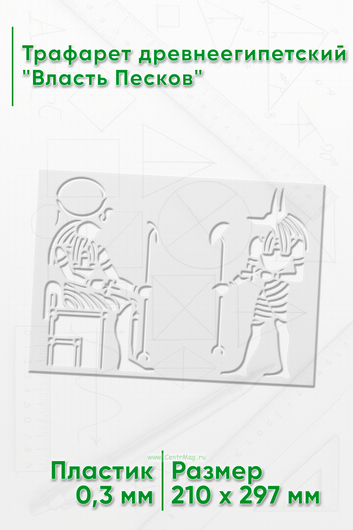 Трафарет древнеегипетский "Власть Песков" предназначен для создания изображений или надписей с мотивами, связанными с фараонами, древним Египтом или египетской символикой