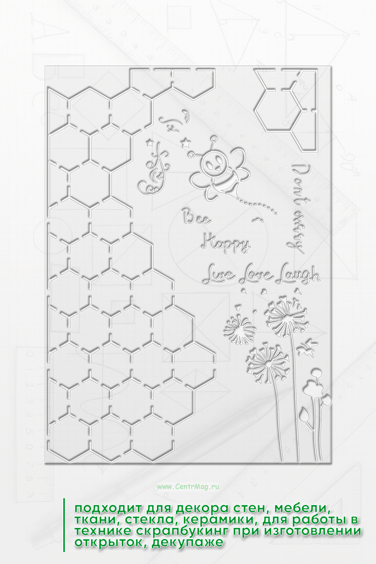 Трафарет подходит для декора стен, мебели, ткани, стекла, керамики, для работы в технике скрапбукинг при изготовлении открыток, декупаже