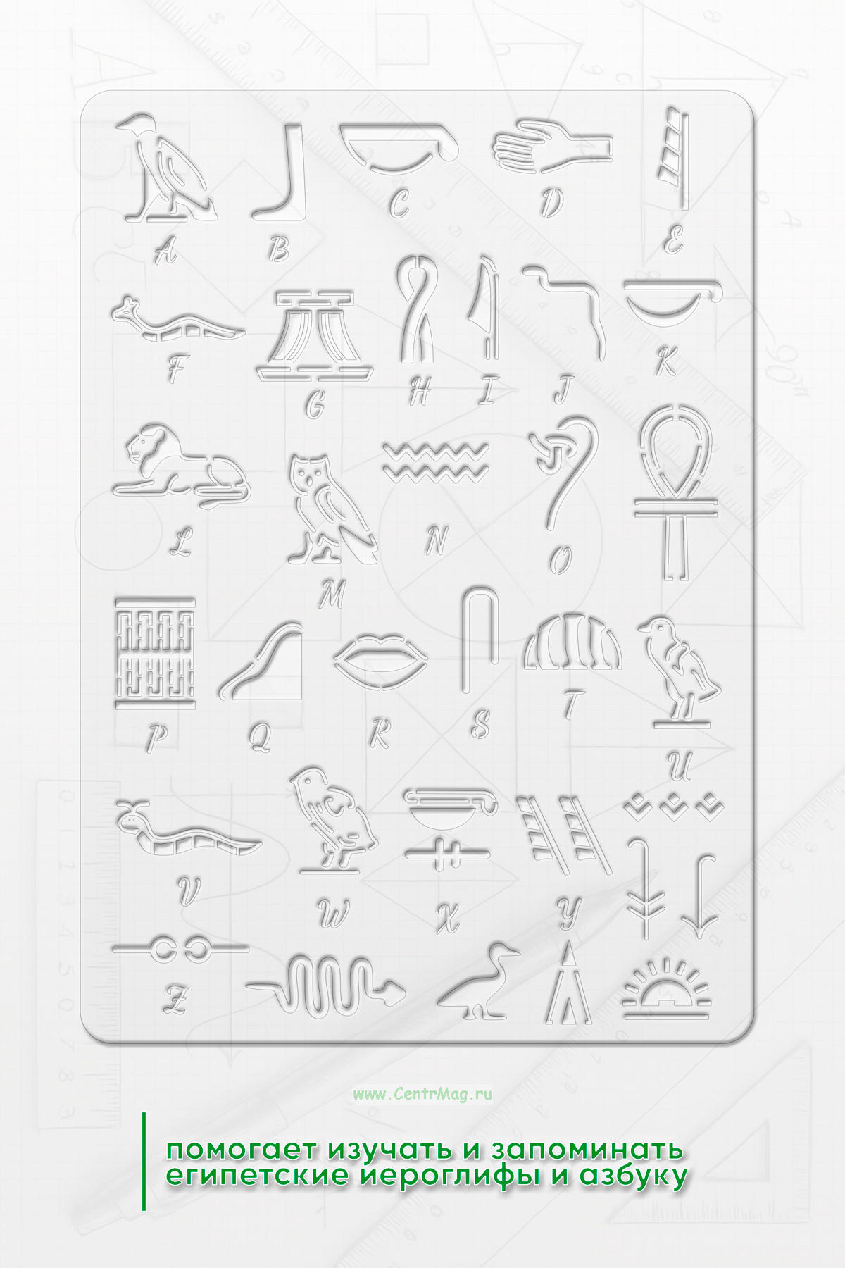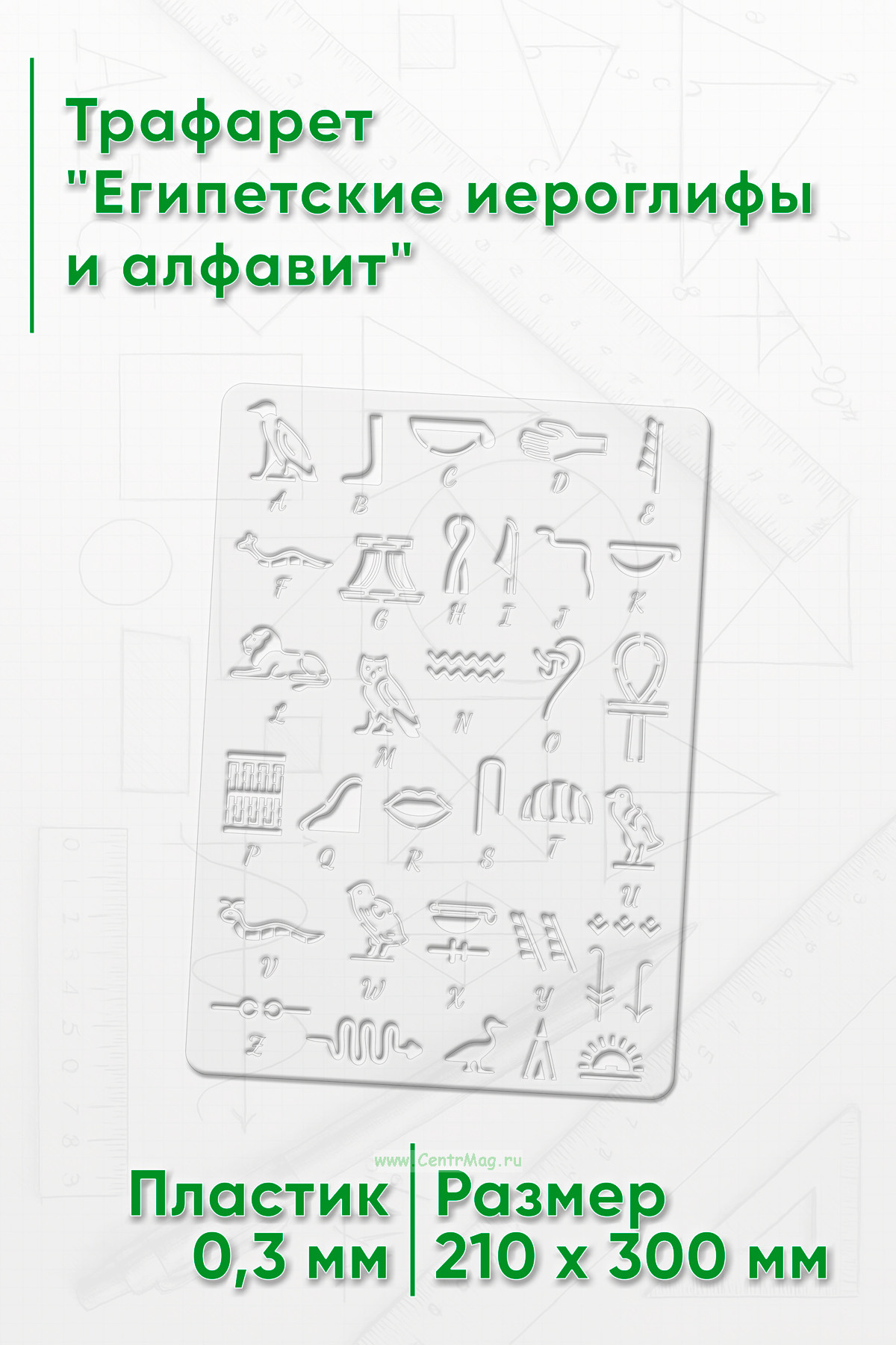 Трафарет "Египетские иероглифы и алфавит" помогает изучать и запоминать египетские иероглифы и азбуку, что полезно для студентов, изучающих древние языки или египтологии. Может быть использован в проведении тематических мероприятий, квестов, викторин или креативных занятий на тему Египта.