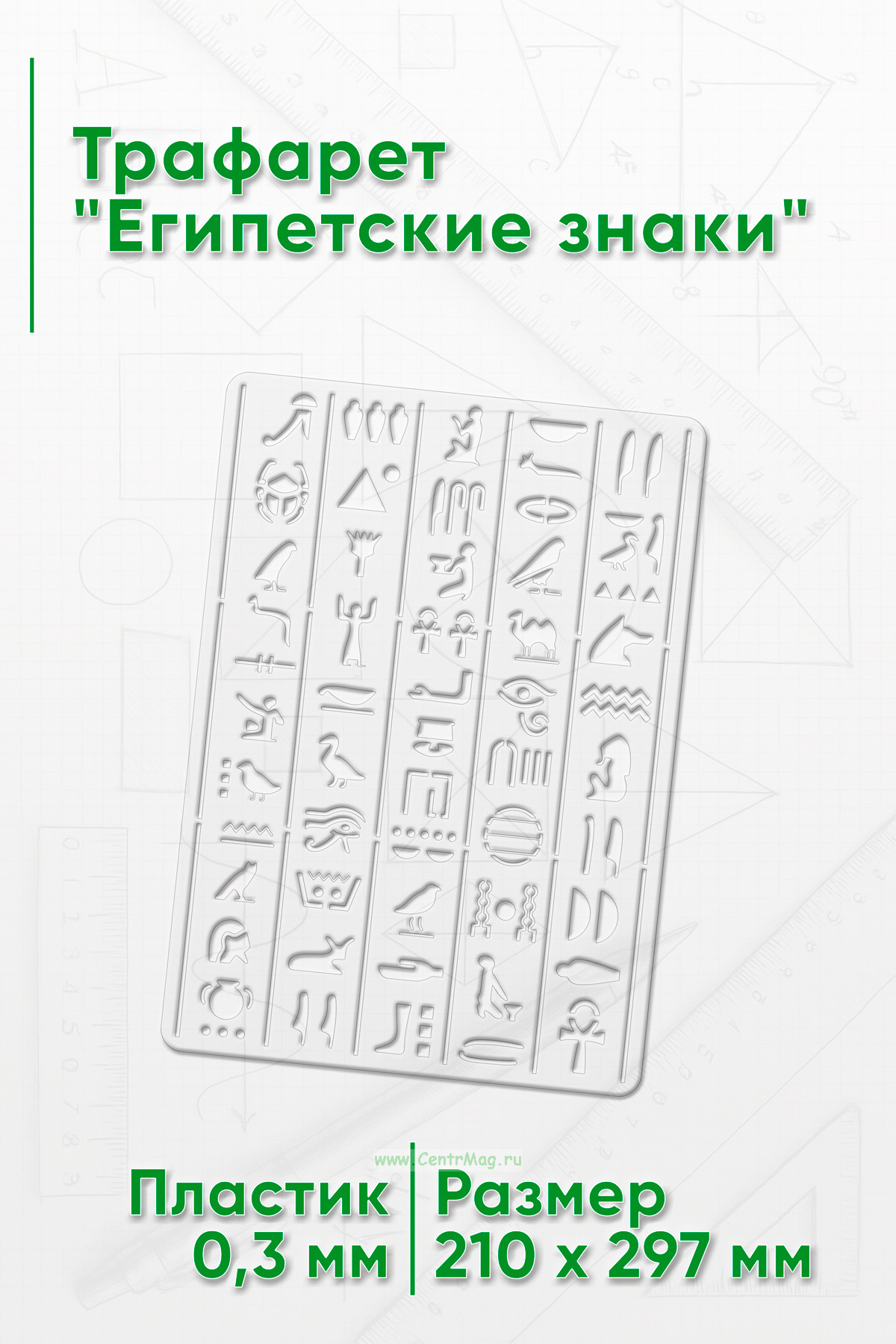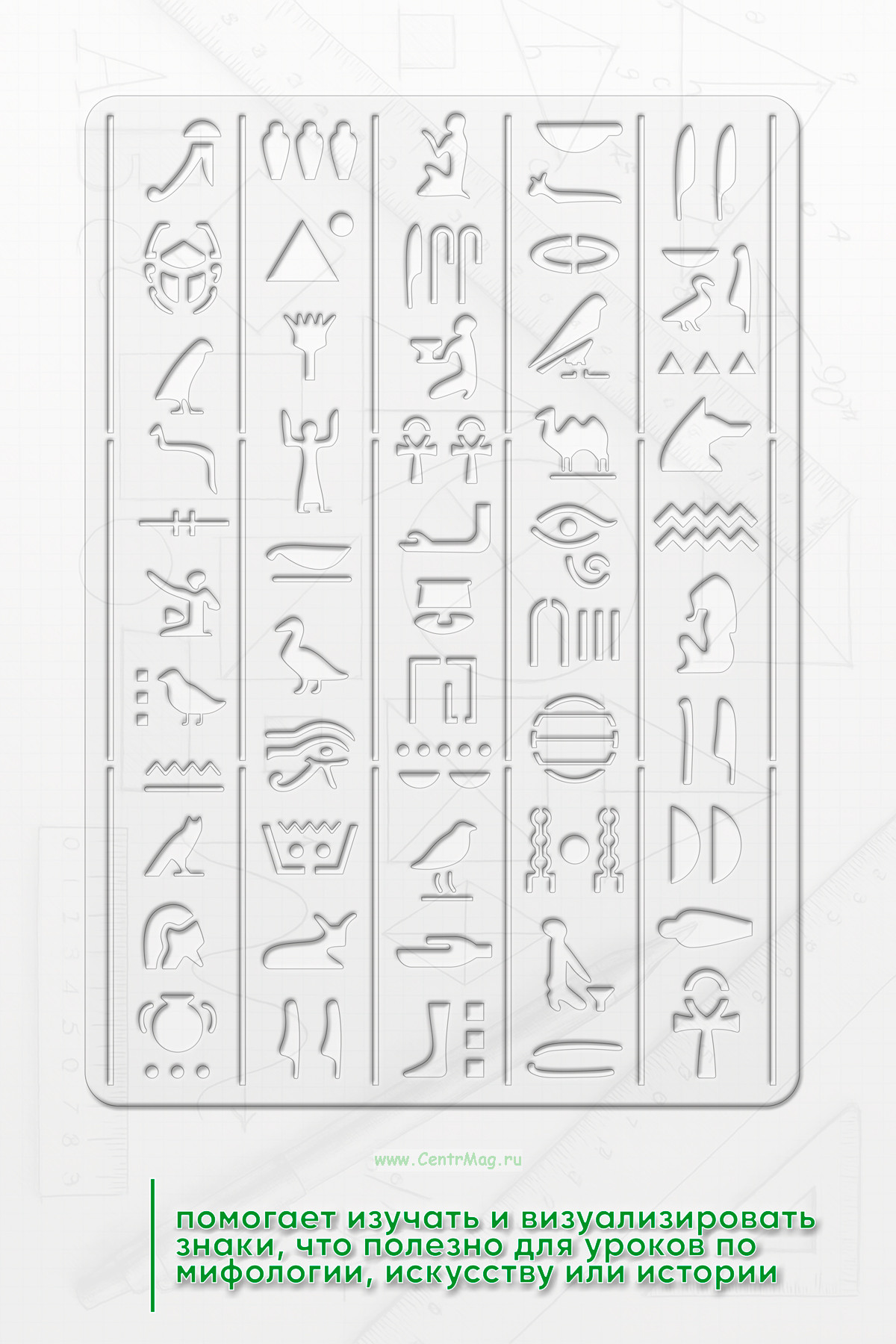 Трафарет "Египетские знаки" помогает изучать и визуализировать знаки, что полезно для уроков по мифологии, искусству или истории.