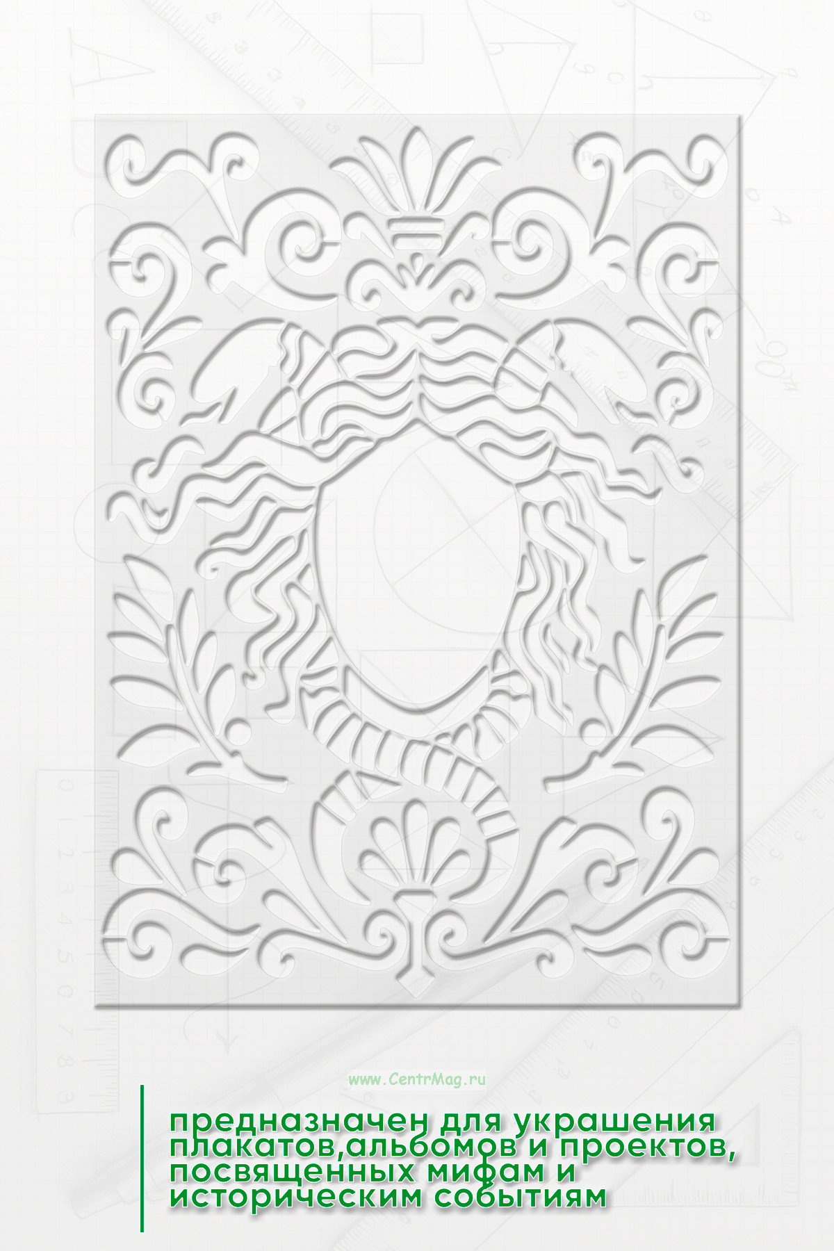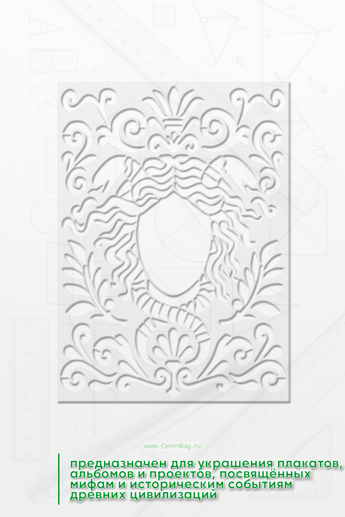 Трафарет "Вдохновение Мифов" предназначен для украшения плакатов, альбомов и проектов, посвящённых мифам и историческим событиям древних цивилизаций. Он помогает визуально подчеркнуть тему древних легенд и придает работе атмосферу таинственности и исторической глубины.