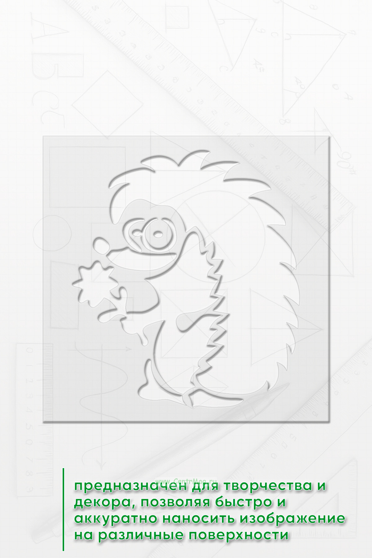 Трафарет предназначен для творчества и декора, позволяя быстро и аккуратно наносить изображение на различные поверхности. Подходит для создания декора на одежде, мебели, стенах, оформления блокнотов и открыток, а также для тематических плакатов и постеров.