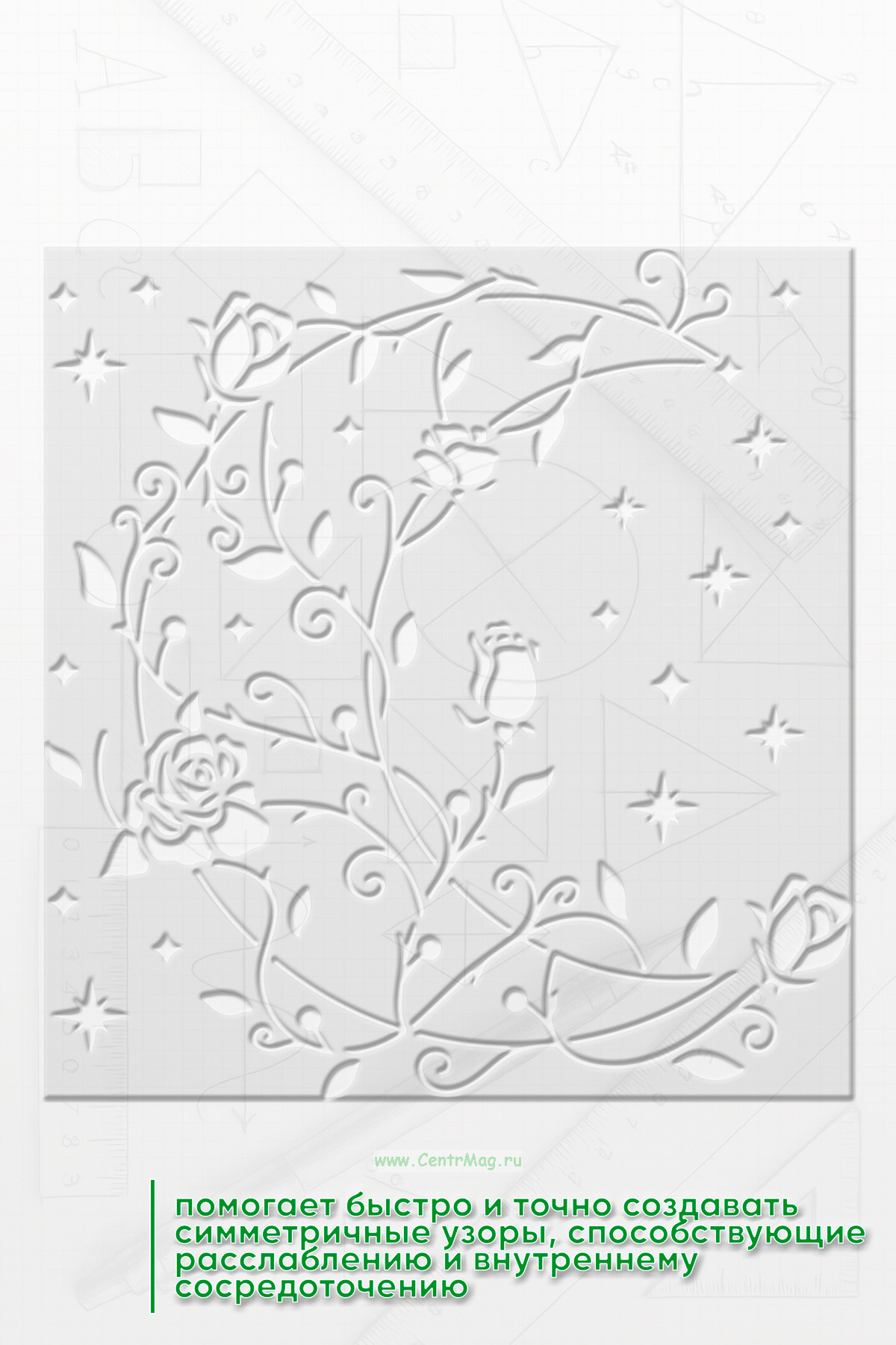 Трафарет помогает быстро и точно создавать симметричные узоры, способствующие расслаблению и внутреннему сосредоточению