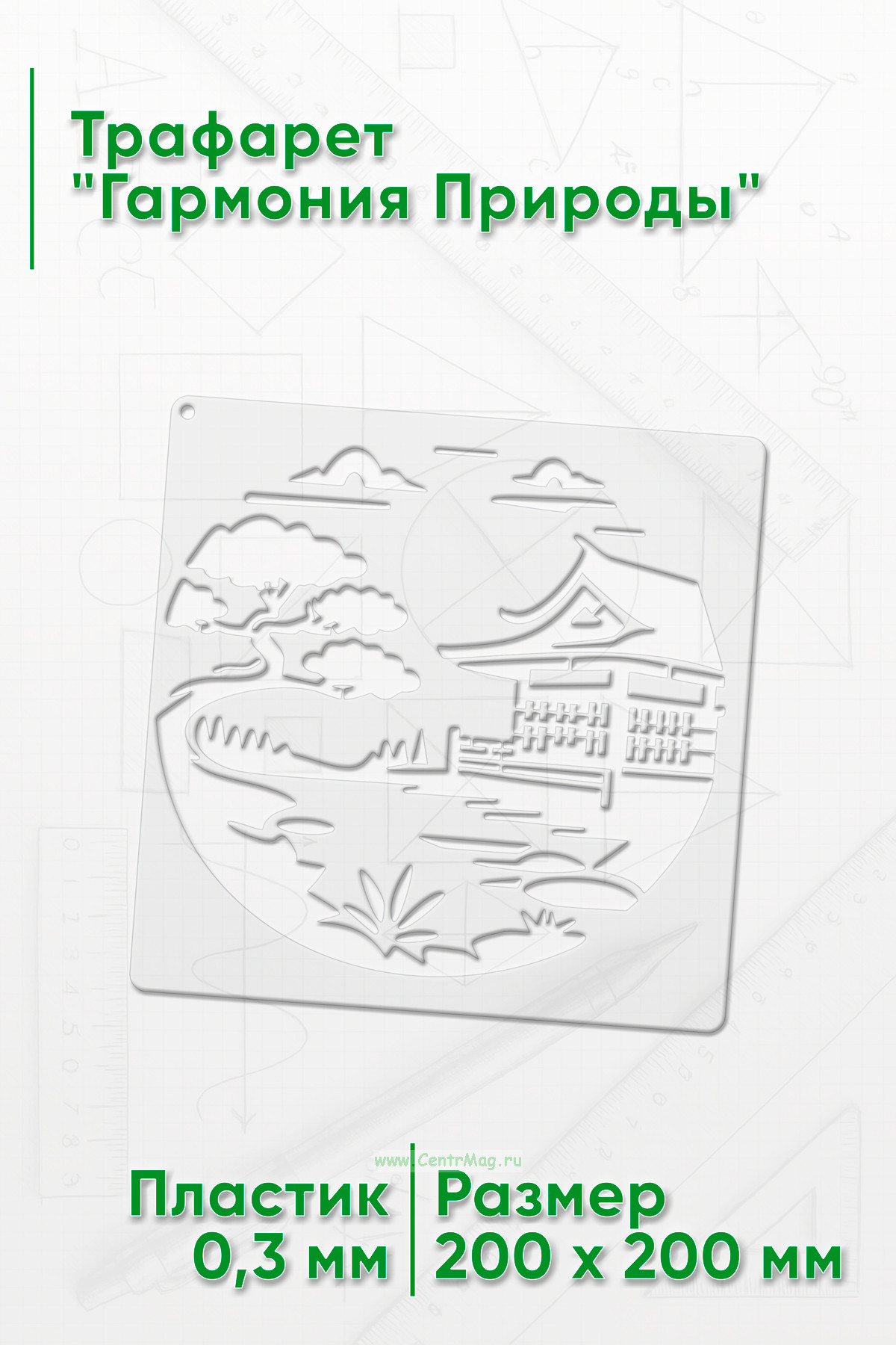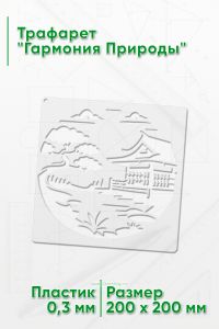 Трафарет "Гармония Природы" позволяет легко создавать атмосферные и гармоничные композиции, отражающие красоту природы и традиционную архитектуру Востока. Он идеально подходит для художников и любителей, желающих добавить восточный акцент в свои работы, упрощая процесс нанесения деталей и форм.