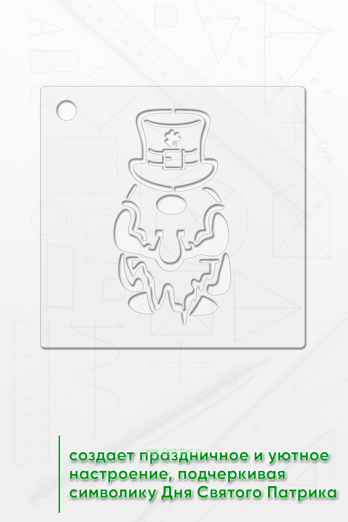 Трафарет создает праздничное и уютное настроение, подчеркивая символику Дня Святого Патрика.