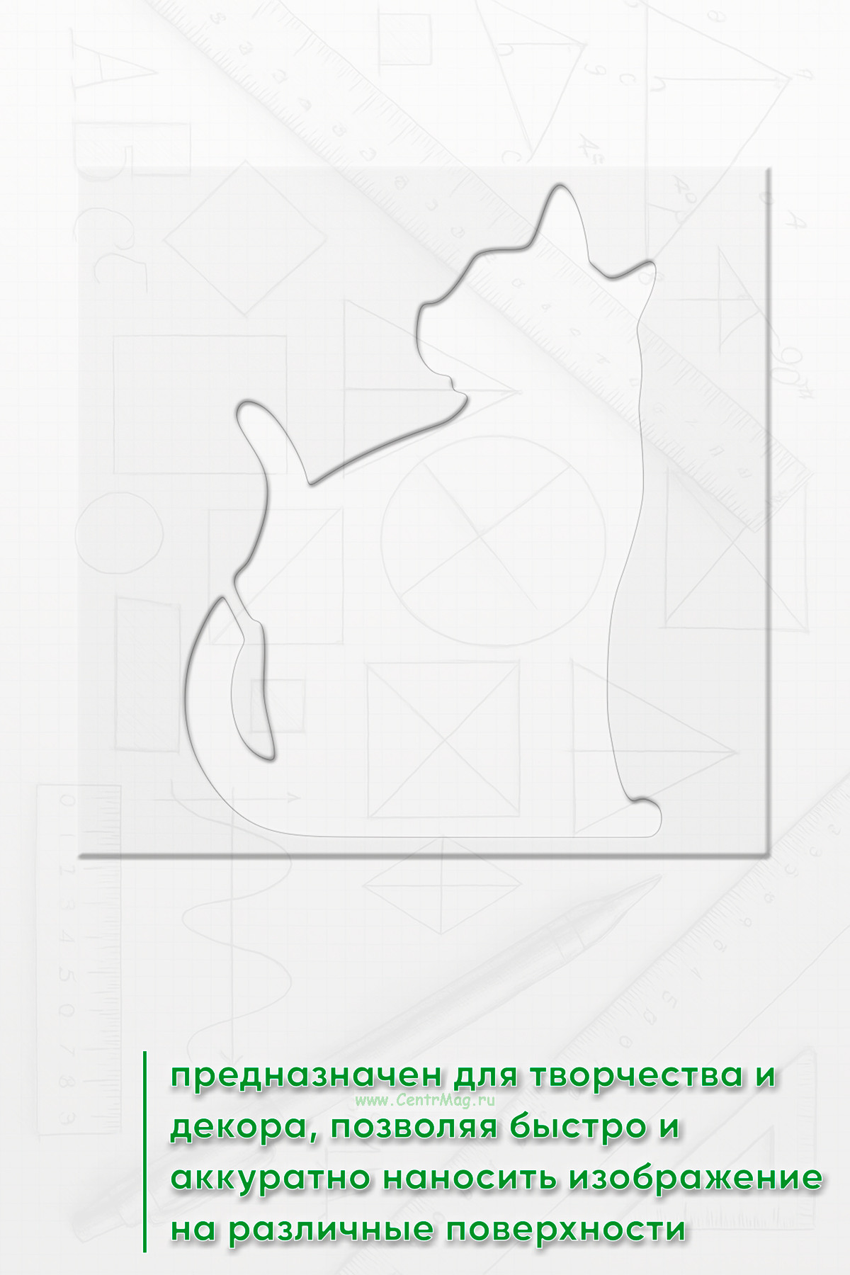 Трафарет предназначен для творчества и декора, позволяя быстро и аккуратно наносить изображение на различные поверхности. Подходит для создания декора на одежде, мебели, стенах, оформления блокнотов и открыток, а также для тематических плакатов и постеров.