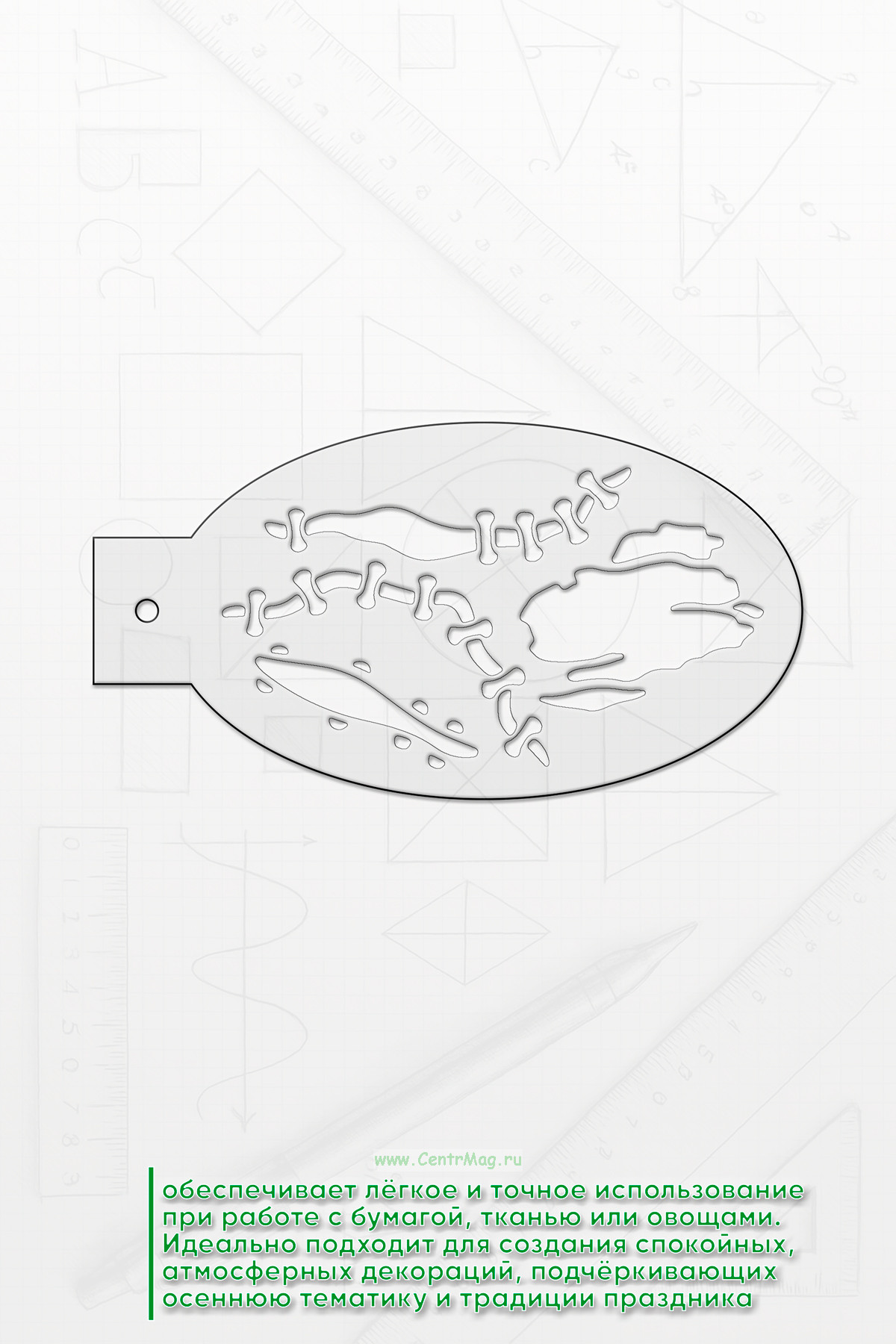 Трафарет проработан и вдохновлён традициями Хэллоуина. Удобная ручка на каждом трафарете обеспечивает лёгкое и точное использование при работе с бумагой, тканью или овощами. Идеально подходит для создания спокойных, атмосферных декораций, подчёркивающих осеннюю тематику и традиции праздника.