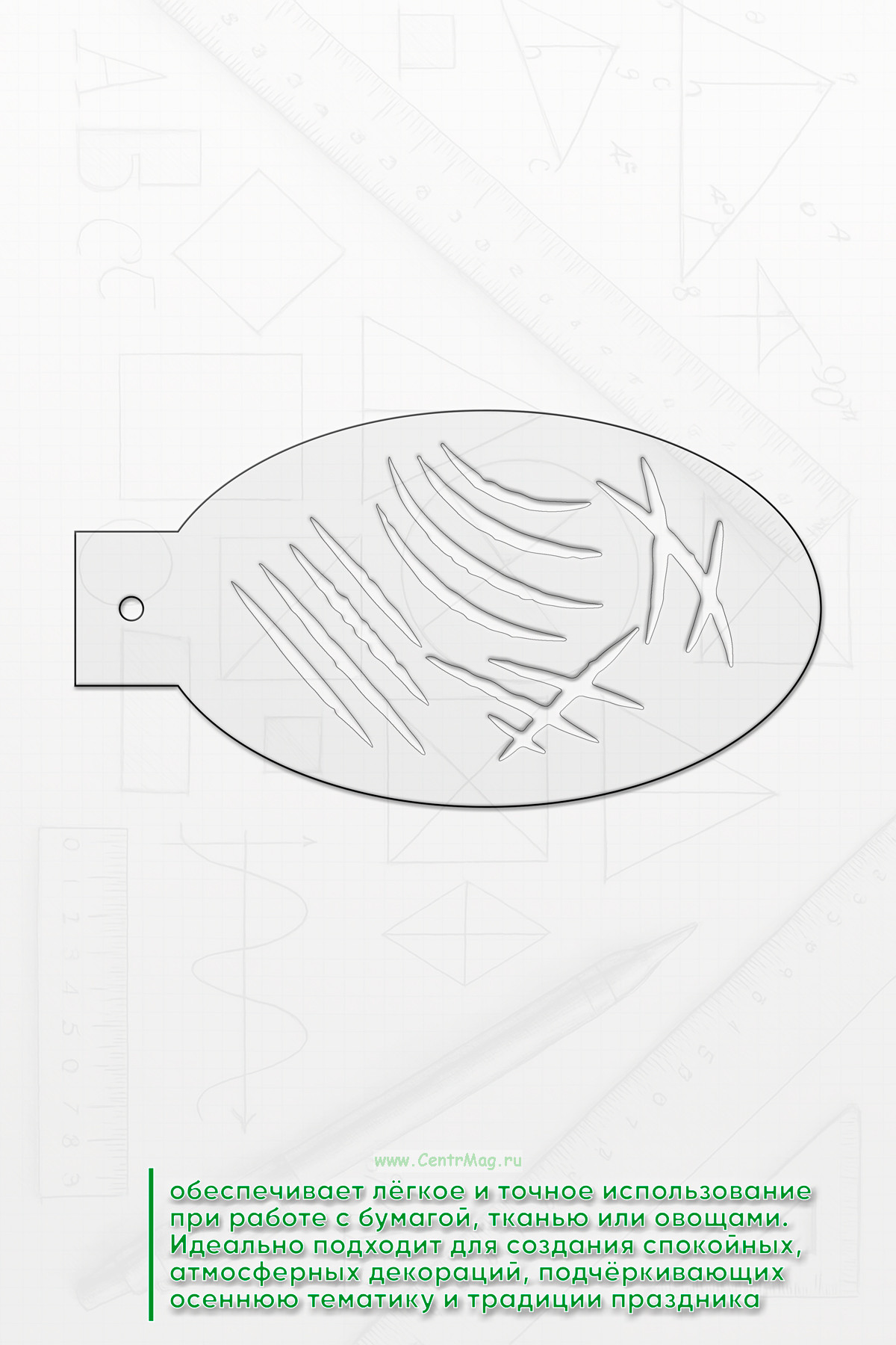 Трафарет проработан и вдохновлён традициями Хэллоуина. Удобная ручка на каждом трафарете обеспечивает лёгкое и точное использование при работе с бумагой, тканью или овощами. Идеально подходит для создания спокойных, атмосферных декораций, подчёркивающих осеннюю тематику и традиции праздника.
