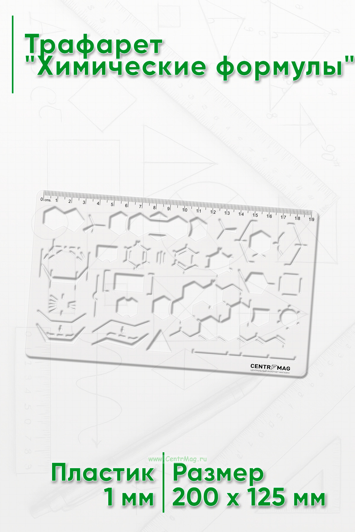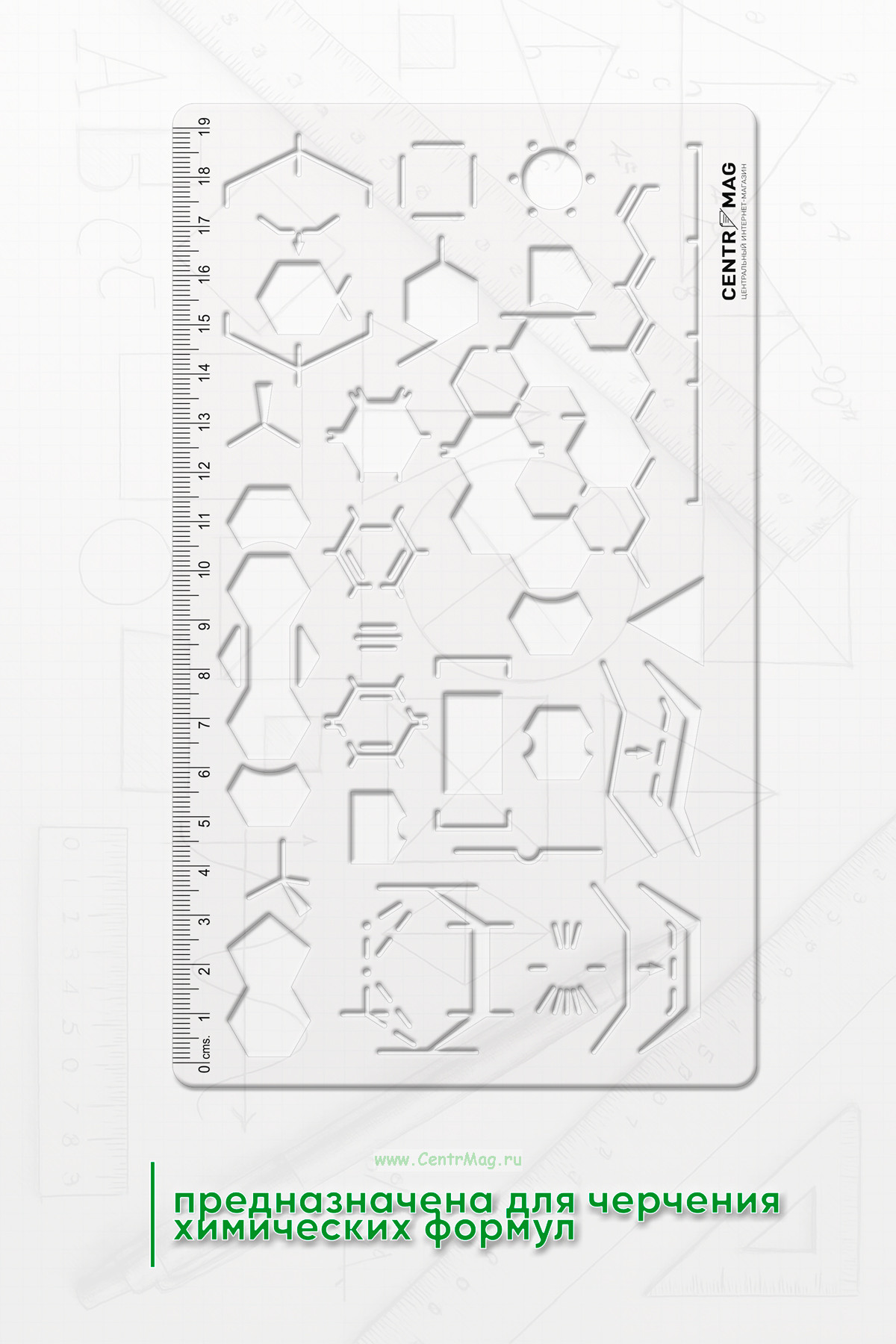 Линейка-трафарет предназначена для черчения химических формул.