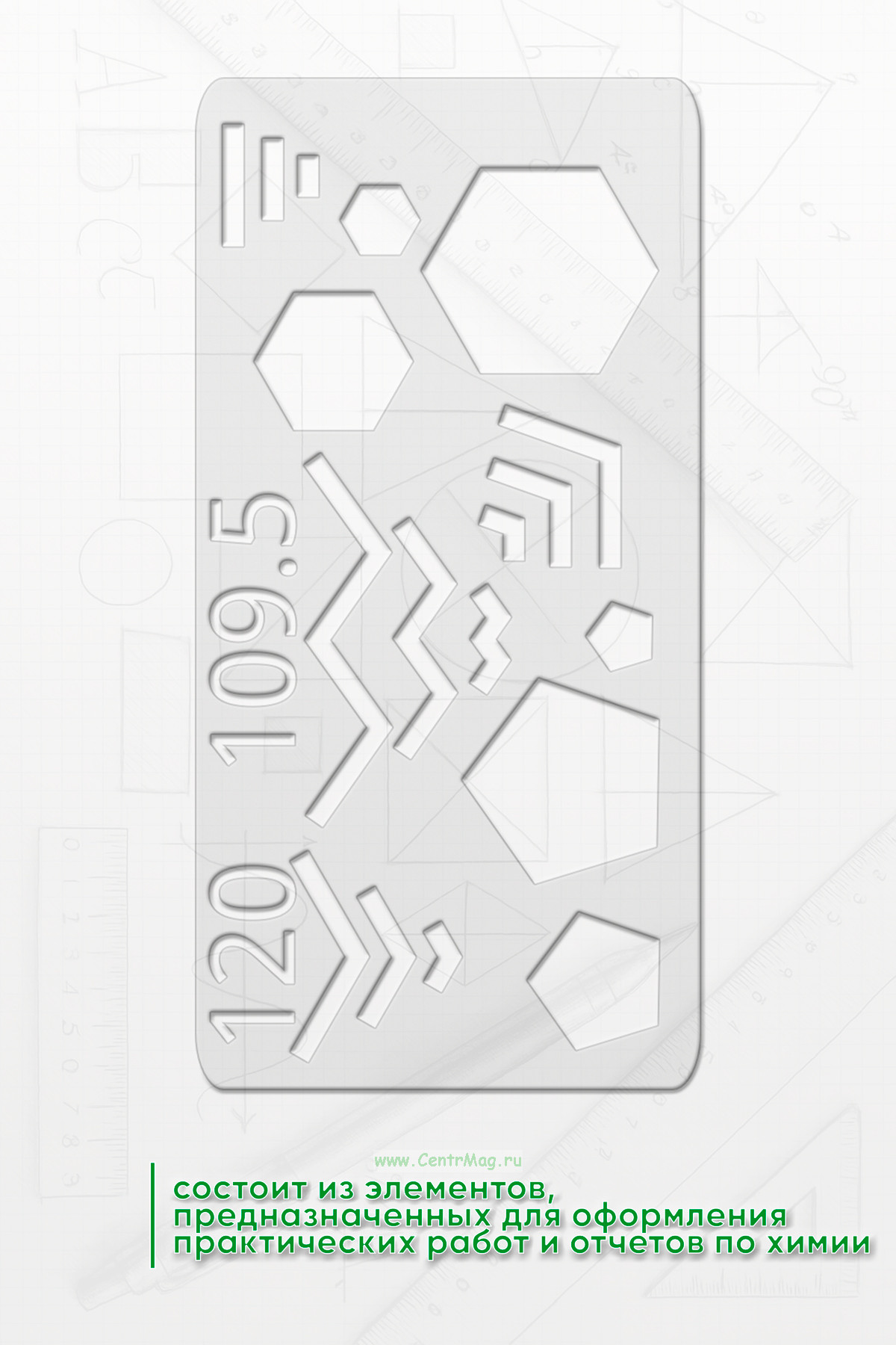 Трафарет состоит из необходимого количества элементов, предназначенных для оформления практических работ и отчетов по химии