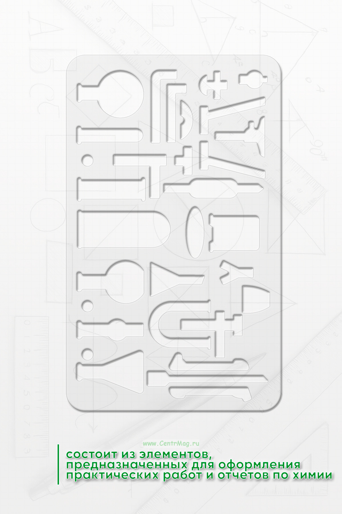 Трафарет состоит из большого количества необходимых элементов, предназначенных для оформления практических работ и отчетов по химии.