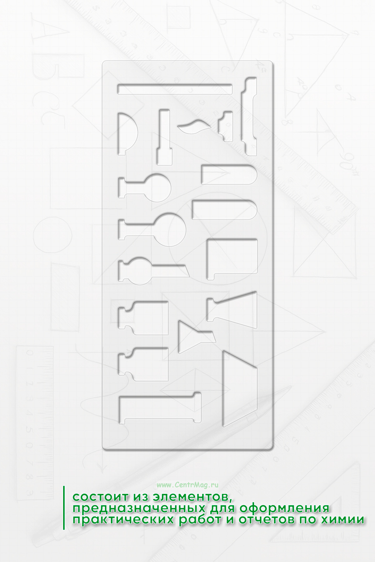 Трафарет состоит из большого количества необходимых элементов, предназначенных для оформления практических работ и отчетов по химии.