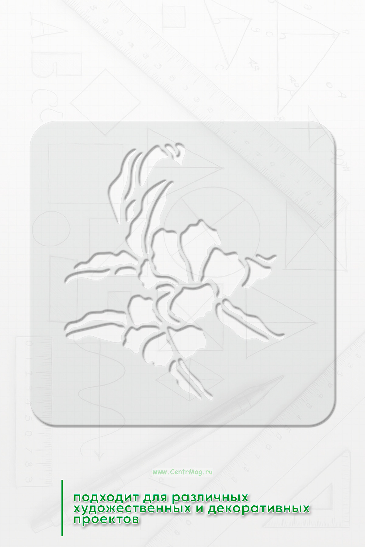 Трафарет идеально подходит для различных художественных и декоративных проектов. Он выполнен в простом дизайне, что позволяет легко использовать его как для новичков, так и для опытных мастеров