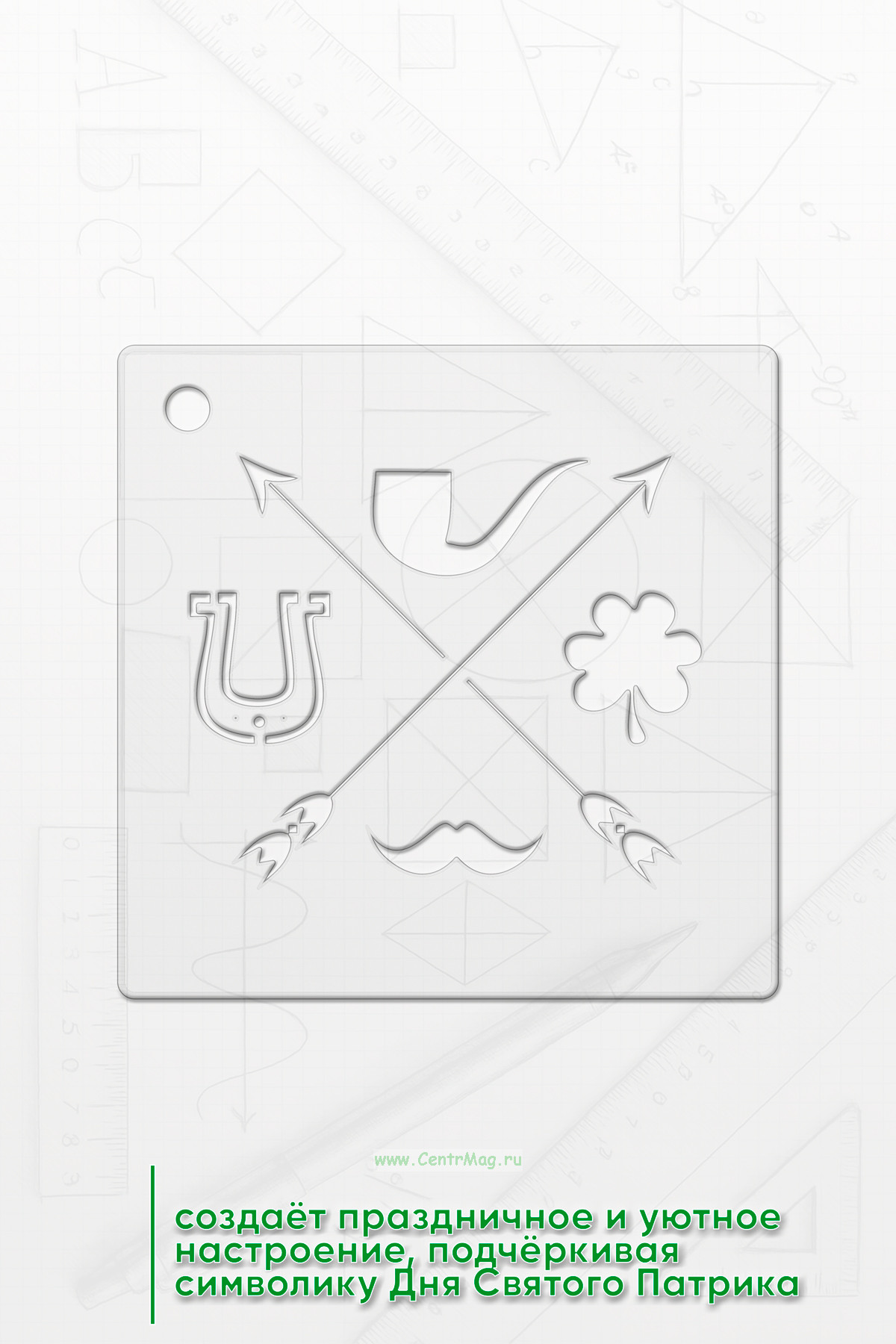 Трафарет создаёт праздничное и уютное настроение, подчёркивая символику Дня Святого Патрика.