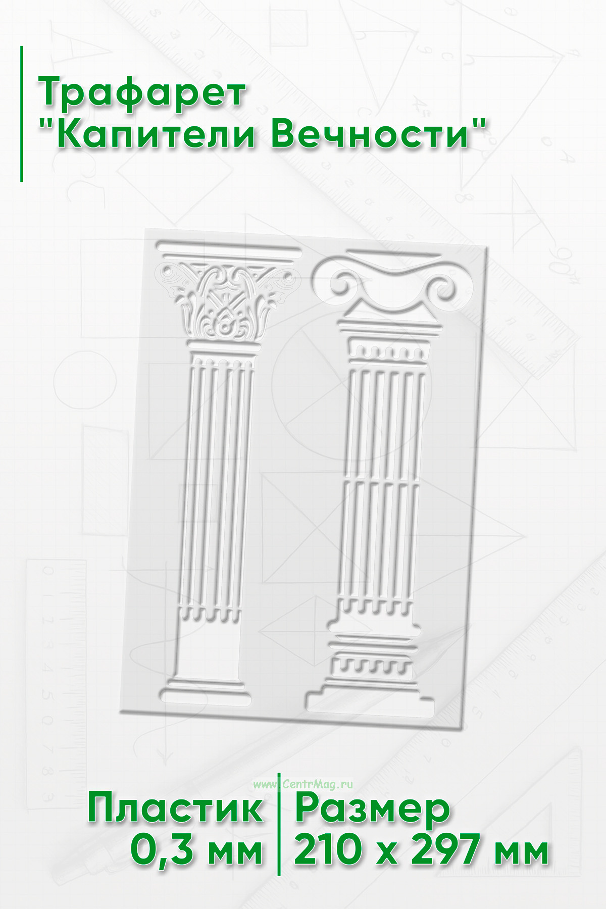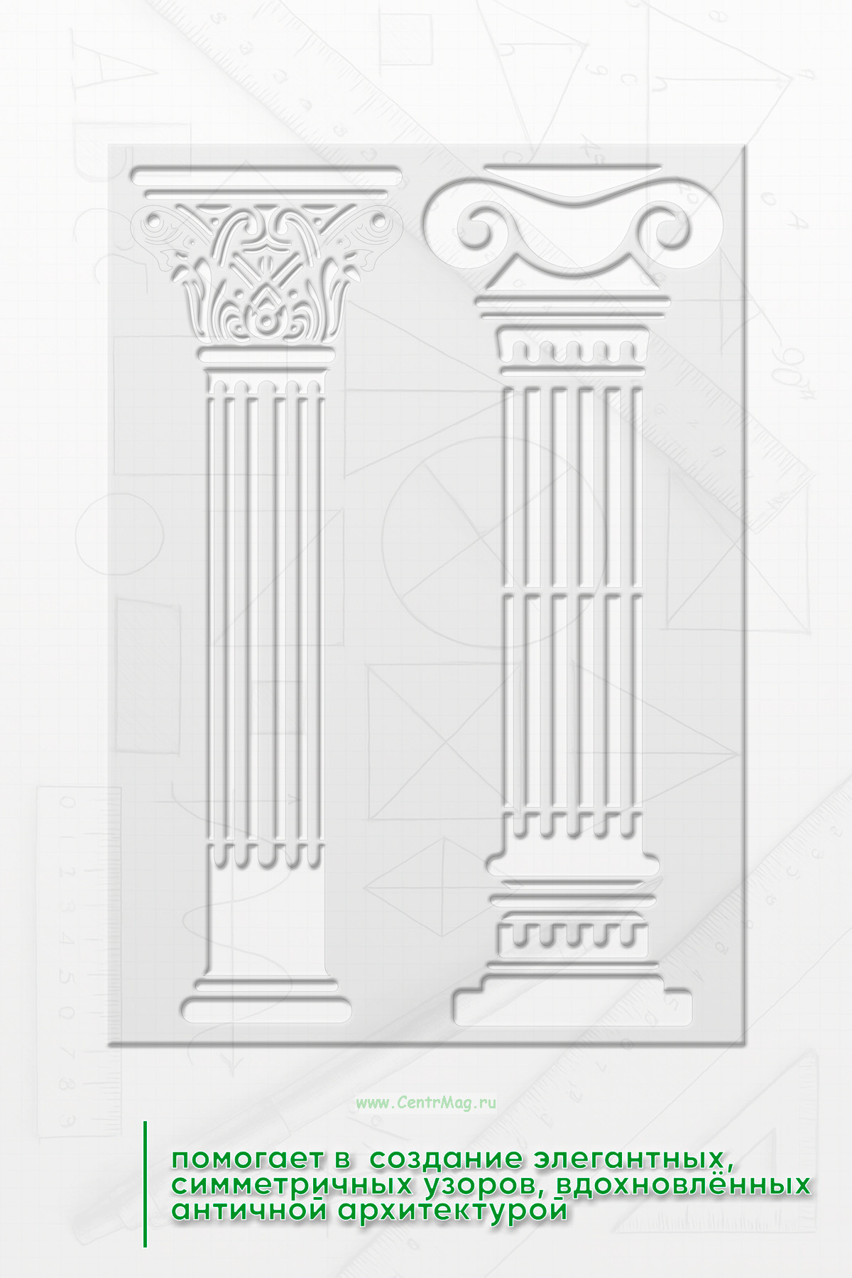Трафарет "Капители Вечности" помогает в создание элегантных, симметричных узоров, вдохновлённых античной архитектурой.